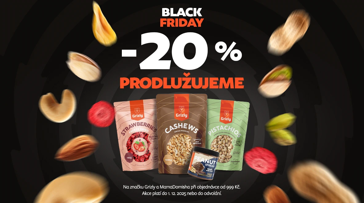 PRODLUŽUJEME: Black Friday sleva 20 % na značky GRIZLY a GRIZLY by @mamadomisha při nákupu nad 999 Kč. Do konce akce zbývá: