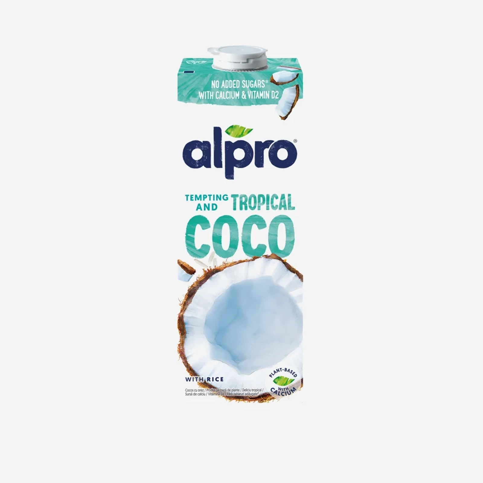 100% rastlinný kokosový nápoj Alpro je chutnou alternatívou kravského mlieka. Je prirodzene bezlaktózový, bez pridaného cukru a je vhodný aj pre vegetariánov.