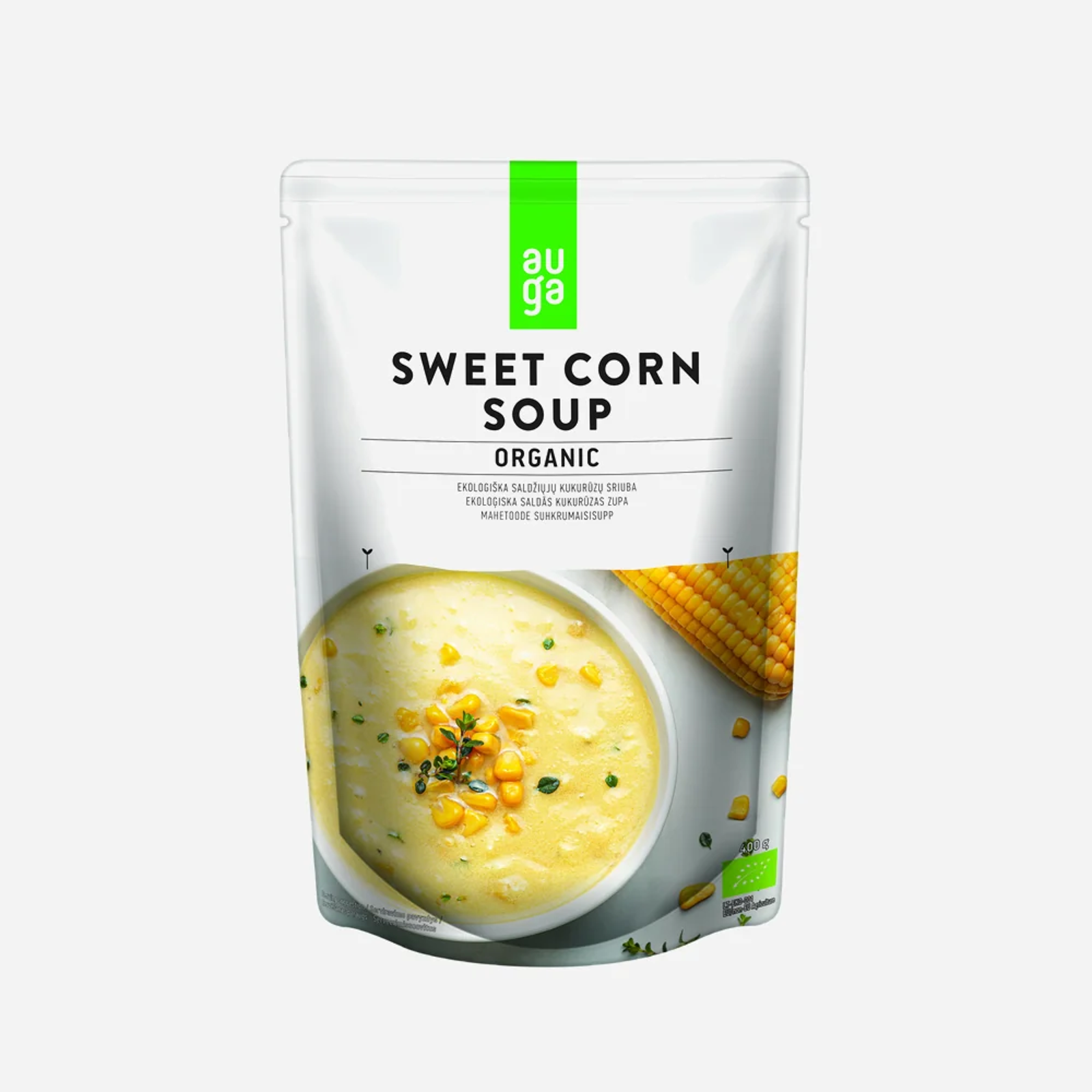 Názov hovorí za seba - táto polievka je vyrobená z kukurice a má prirodzene sladkú chuť a krémovú textúru. Tento štýl polievky je populárny v Ázii, na Strednom východe a v Amerike. V Auga vyrába biopotraviny chytro. Pestujú sa prirodzene, bez vyčerpávanie pôdy, pomocou inovatívnych technológií a prísne sa vyhýbajú akýmkoľvek chemikáliám v procese. Lahodná polievka je balená v ľahkom sáčku, ktorý v porovnaní s plechovkou rovnakej veľkosti vytvára výrazne menej emisií CO2. Stačí zahriať a užívať si skvelú chuť!