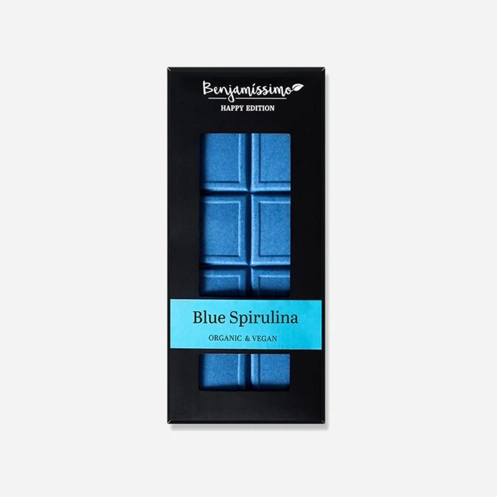 Bio vegánska čokoláda s extraktom z modrej spiruliny a morskou soľou Benjamíssimo Happy Edition. Skvelá na maškrtenie aj ako darček.