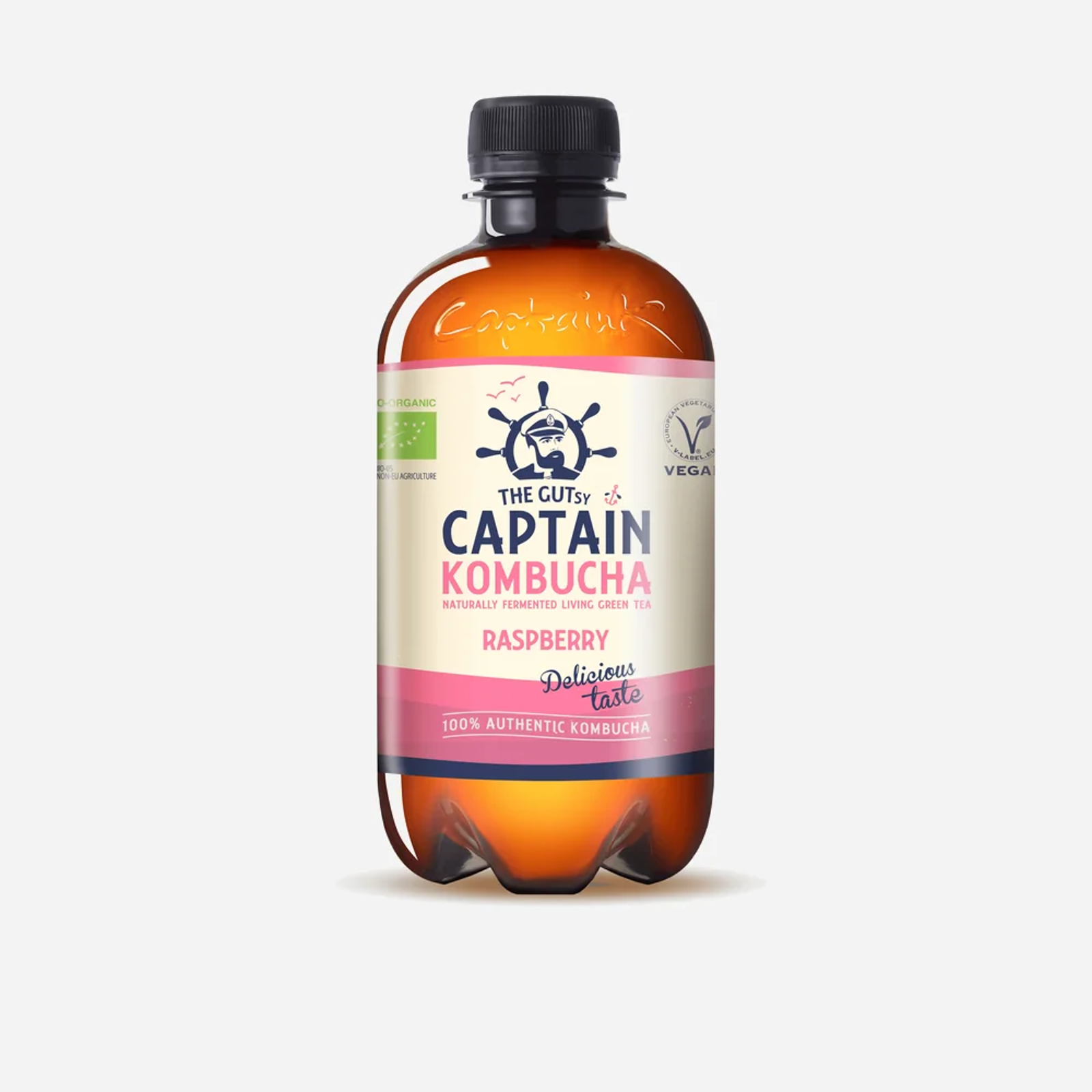 Zloženie: Bio kombucha (filtrovaná voda, bio trstinový cukor, bio zelený čaj 0,4 %, bio listy stévie, kultúry kombuchy), prírodná malinová aróma 0,15 %, bio extrakty (mrkva, jablko, čierne ríbezle), *prírodné tutti frutti aroma , probiotické baktérie Bacillus coagulans.