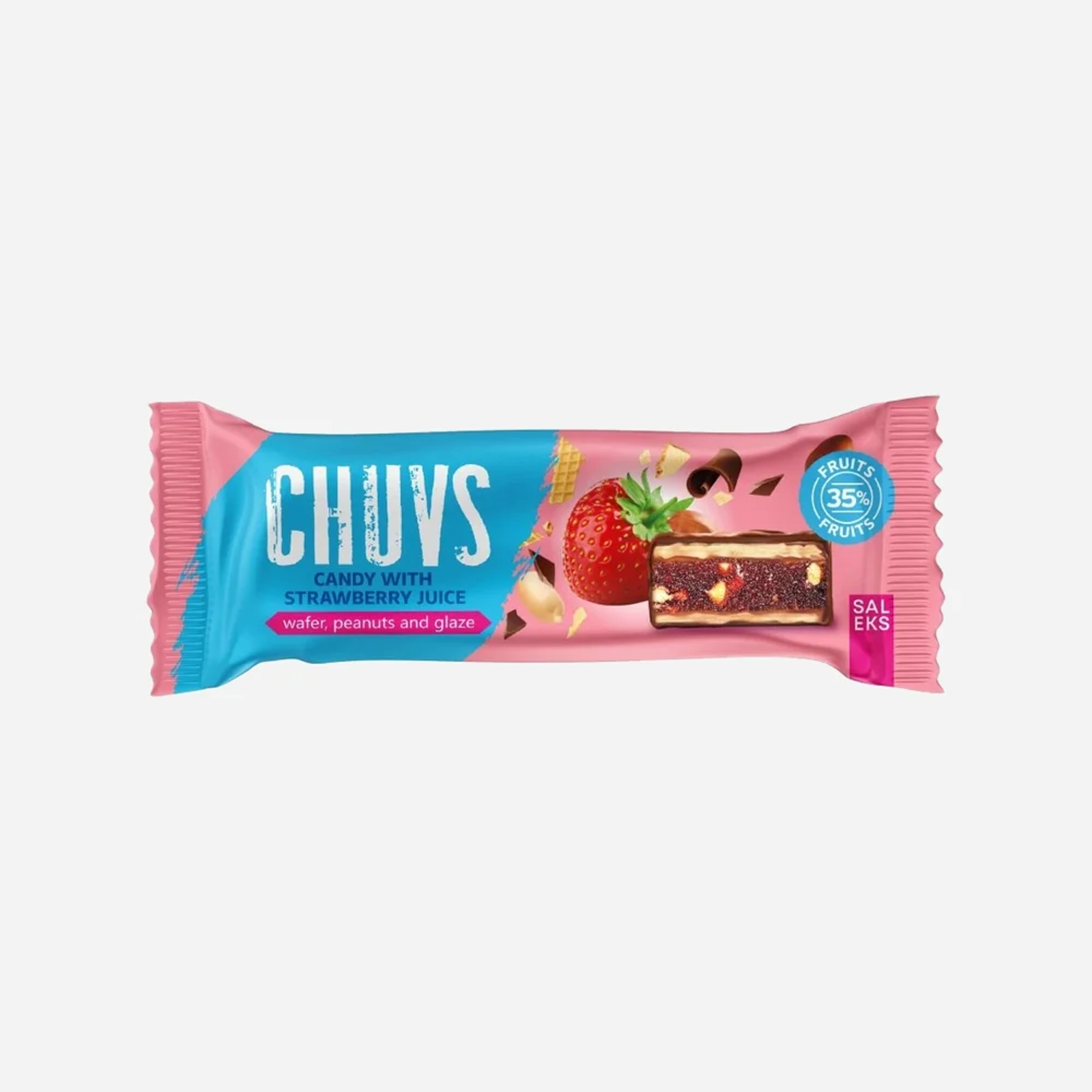 Tyčinky Chuvs sú revolučnou kombináciou bohatej chuti a energie. Svieža a nezameniteľná kombinácia ingrediencií prináša šťavu do každodenného života. Každá tyčinka obsahuje pestré zloženie vrátane šťavnatého ovocia, chrumkavých orieškov a bohatej kakaovej polevy.