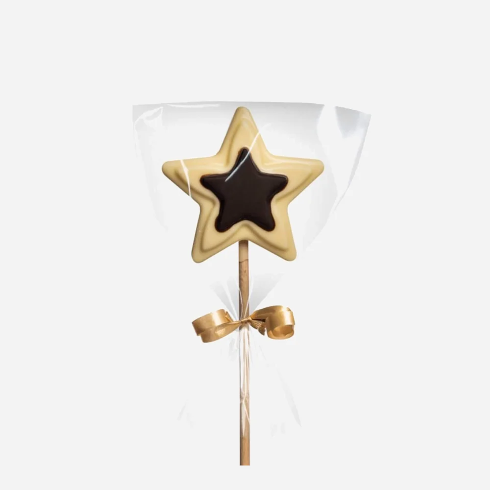 Čokoládové lízatko je odpoveďou na to, ako nemať upatlané ruky od čokolády. Od kvalitnej horkej a sladkej bielej čokolády prevoňanej vanilkou, žiadnymi arómami alebo esenciami, ale zrniečkami pravej vanilky. Táto hviezdička vonia, chrumká a zároveň sa pomaly rozplýva na jazyku.