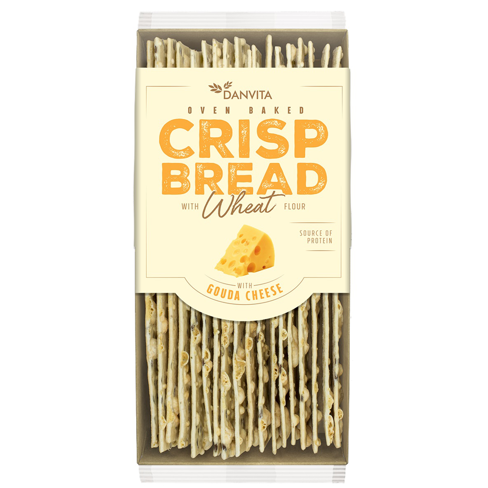 Krehké pšeničné plátky so syrom gouda.