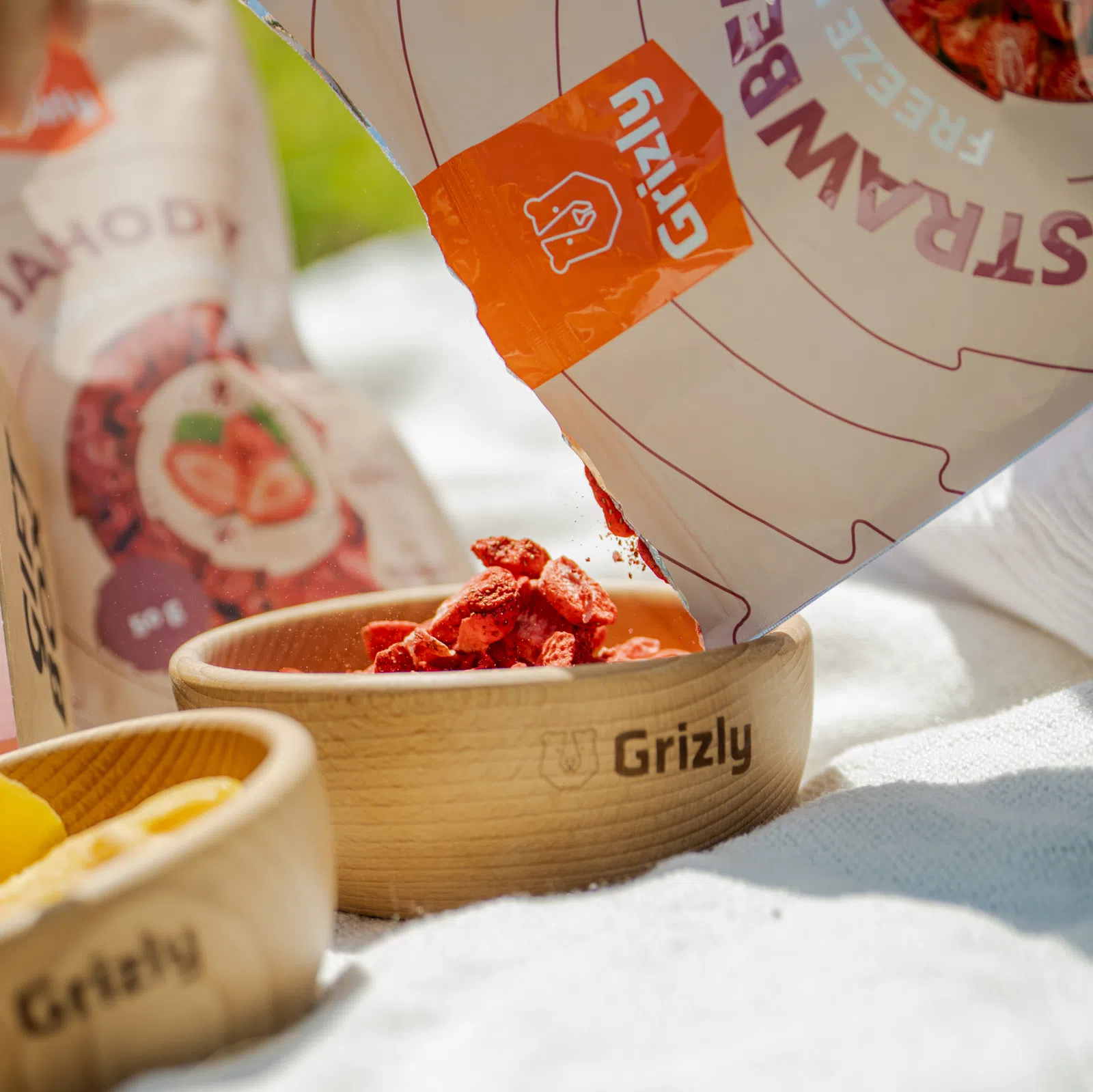Odteraz už nemusíte dlho premýšľať, v čom podávať naše fantastické pochúťky. Vždy si nájdu svoje miesto v krásnej drevenej miske z bukového dreva s ešte krajším logom Grizly.