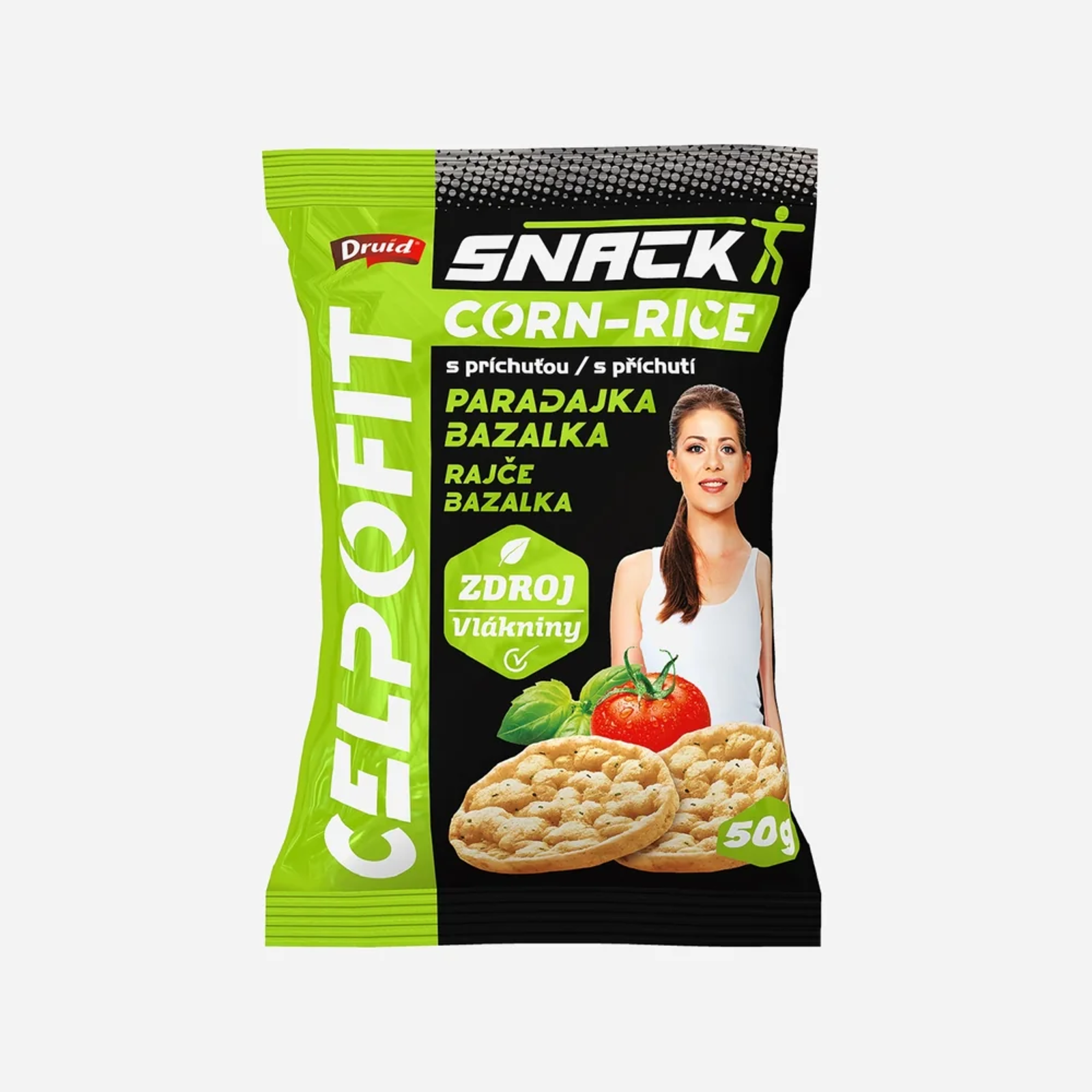 Chrumkavé plátky kukuričnej ryže s príchuťou paradajok a bazalky sú ideálnym občerstvením, keď máte chuť na niečo slané. Sú vhodné ako malé občerstvenie a neobsahujú lepok. Sendviče nie sú vyprážané, ale vyrábajú sa „pufovaním“ - zrnká ryže a kukurice sa vložia do expanzného stroja, kde sa pri teplote približne 300 °C odparí voda, „nafúknu“ sa a potom sa zlisujú do mini sendvičov. Pri tomto procese sa nepoužíva žiadny pridaný tuk.