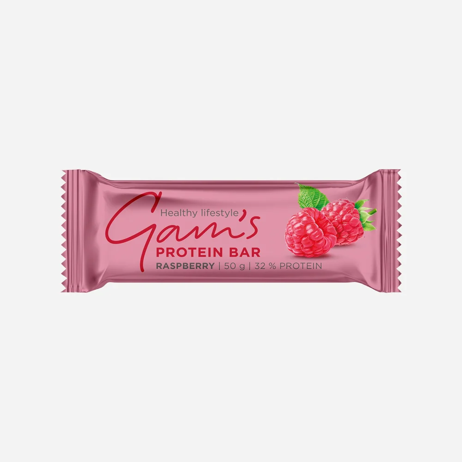 Proteínová tyčinka Gam's Raspberry prináša osviežujúcu kombináciu lyofilizovaných malín a vanilínovej pasty v bielej poleve s bielkovinami.