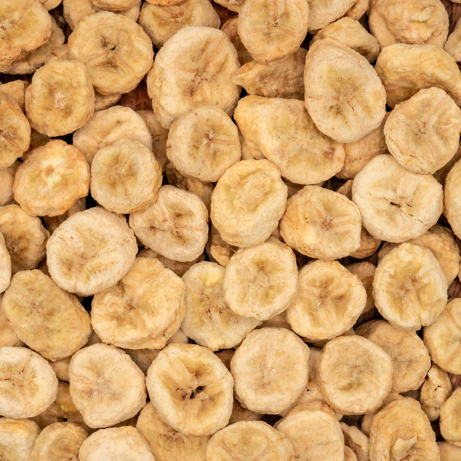 Chrumkavé banánové plátky, ktoré prešli procesom lyofilizácie, skvele využijete napríklad pri tvorbe domácich múčnikov, do granoly alebo pestrého smoothie.