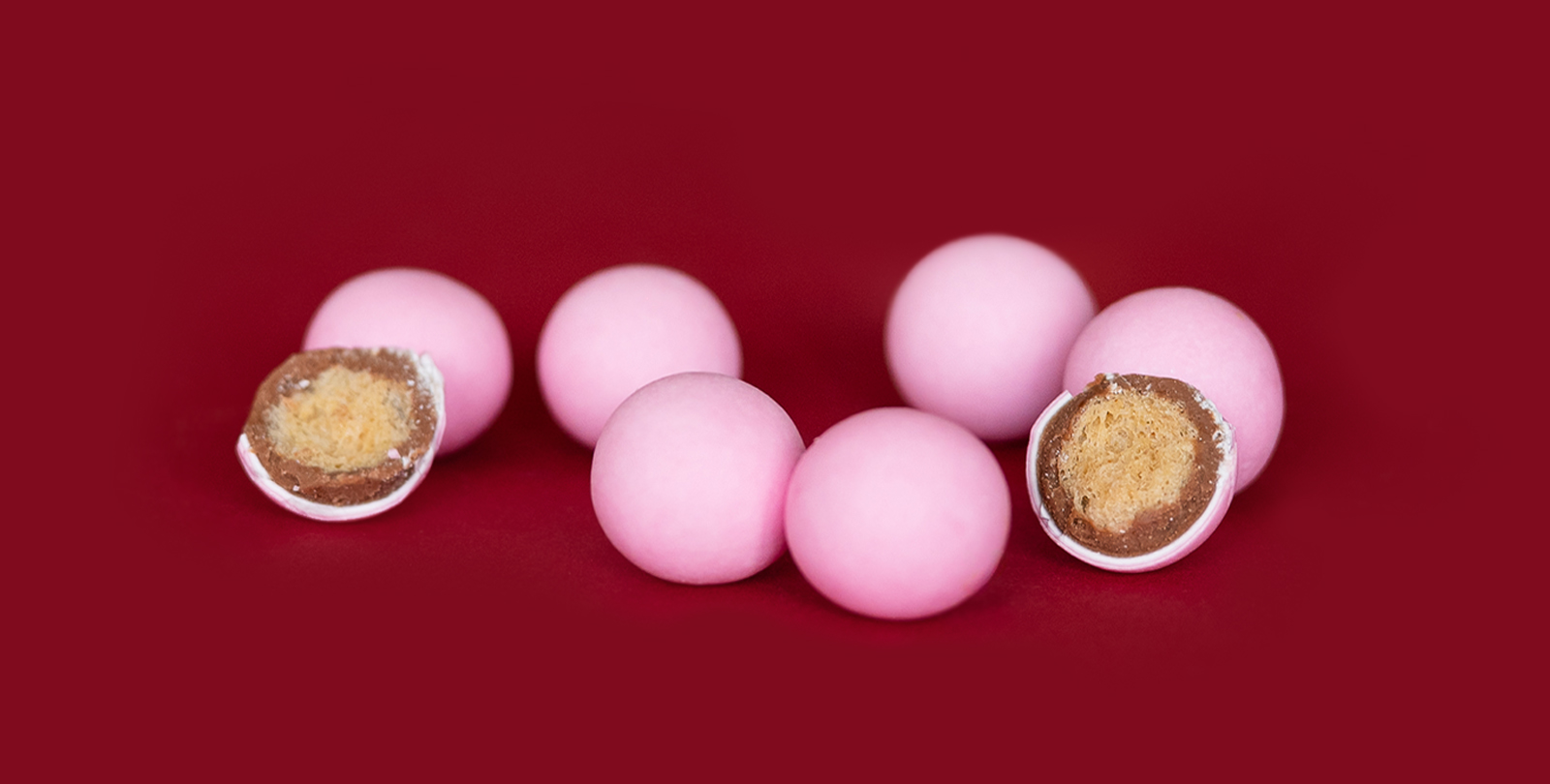 Zloženie: | kakaový krém 48 % (cukor, hydrogenovaný palmojadrový olej, sušené plnotučné mlieko, kakaový prášok, sušená syrovátka, emulgátory: sojové lecitíny, tristearát sorbitolu; vanilínové aroma), cukor 40 %, cereálna chrumkavá stredová časť 11 % (pšeničná múka, celozrnná pšeničná múka, cukor, pšeničný lepok, sladová pšeničná múka, soľ, kypriaci prostriedok: hydrogénuhličitan sodný), aroma, ryžový škrob, stabilizátory: arabská guma, sacharózové estery mastných kyselín; farbivá: karmín; leštiaca látka: karnaubský vosk. |