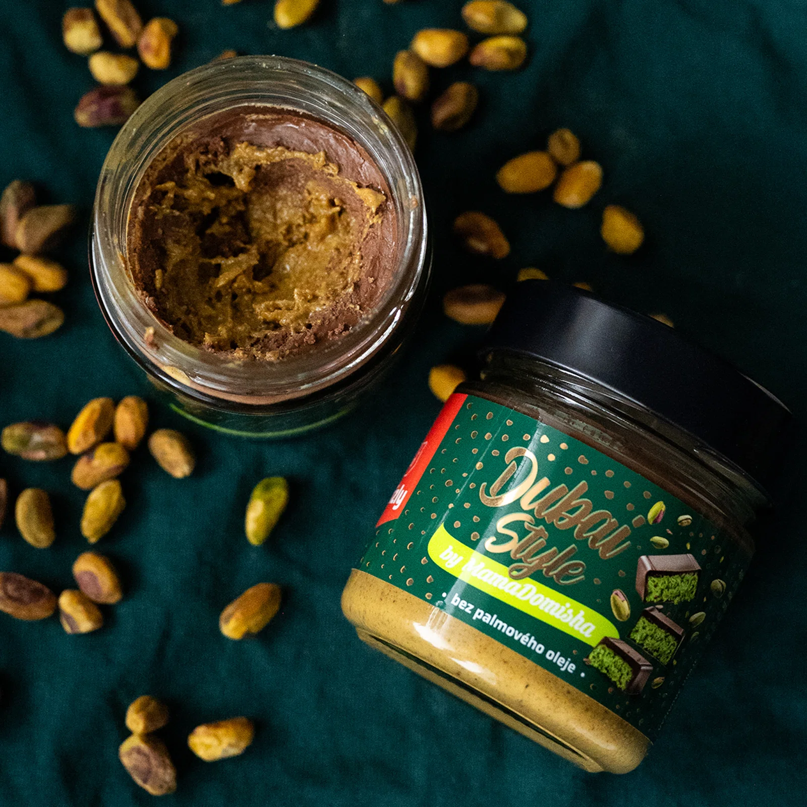 Už nemusíte letieť až do Dubaja, aby ste ochutnali túto luxusnú pochúťku inšpirovanú slávnou dubajskou čokoládou. Receptúra krému Dubai style spread, rovnako ako samotná dubajská čokoláda, vychádza z tradičných arabských receptov. Spája bohatú chuť exkluzívnej čokolády, nadýchanej pistáciovej peny a chrumkavého kanafeh. Kunafa, kanafeh či knafeh, je preslavený svojou jemne sladkastou chuťou a tenkými cestovinovými vláknami, ktoré dodávajú nezameniteľnú chrumkavosť – a práve tú nájdete aj v tomto kréme. Nechajte sa uniesť jedinečnou kombináciou chutí a vôní. Ale pozor – mizne rýchlo! Akonáhle ochutnáte prvú lyžičku, nebudete chcieť prestať.