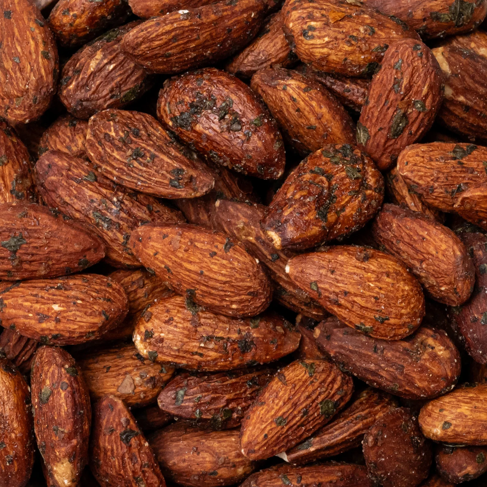 Doprajte si natural pražené nelúpané mandle so zmesou korenia v kombinácii petržlenu, cesnaku, chilli a čierneho korenia s trochou soli. Originálna pochúťka na cesty.