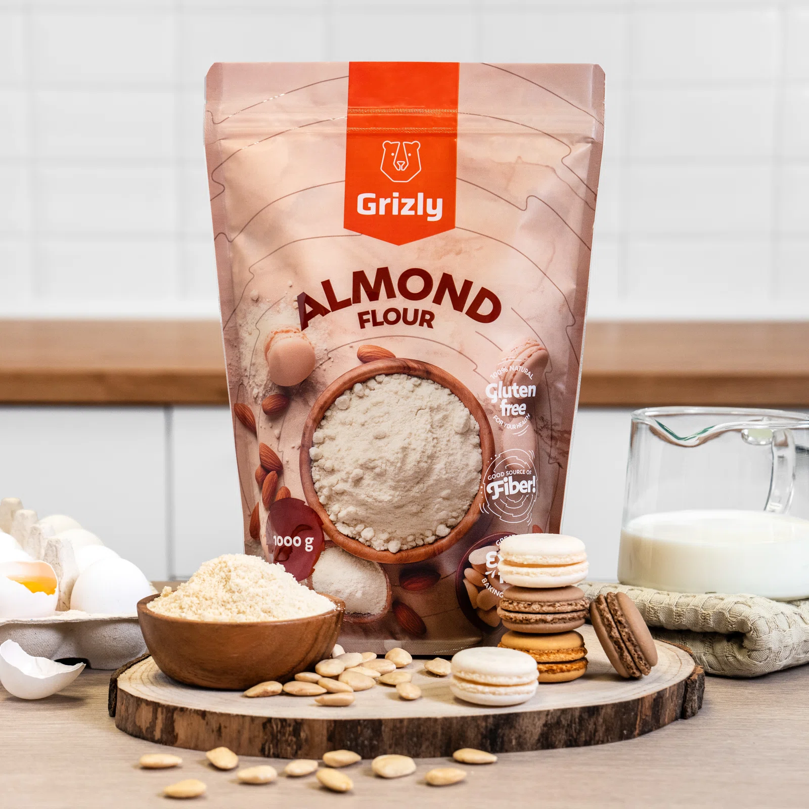 Čo vám napadne, keď sa povie mandľová múka? No jasné! Makrónky! Z mandľovej múky toho ale upečiete oveľa viac. Patrí totiž medzi najhľadanejšie suroviny na bezlepkové pečenie, zároveň s ňou môžete čiastočne nahradiť klasickú múku. GRIZLY mandľová múka sa vyrába z lúpaných alebo chcete, blanšírovaných mandlí.