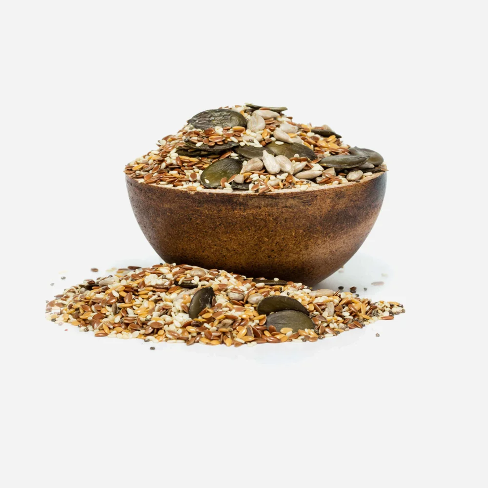 Semienková zmes je tvorená šiestimi druhmi semienok. Nájdete v nej semienka slnečnicové, ľanové zlaté aj hnedé, tekvicové, chia a konopné. Zmes použite na dochutenie jedál, do müsli alebo smoothie.