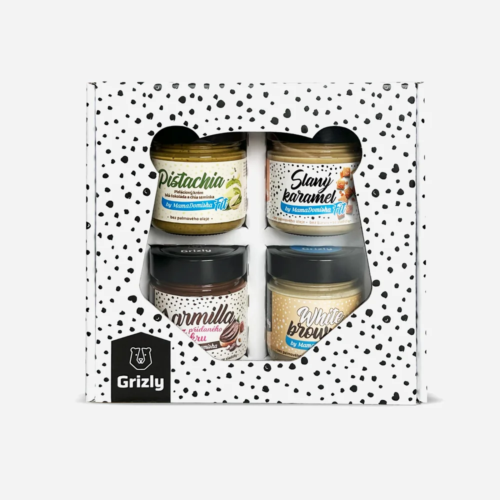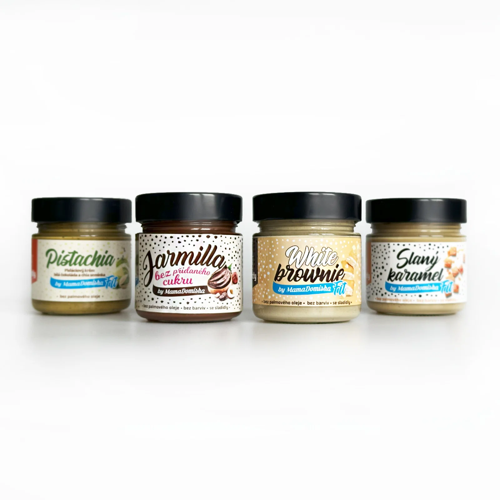 Ak už dlhší čas pokukujete po niektorom z FIT orechových masiel od @mamadomisha, ale neviete sa rozhodnúť, ktoré z nich ochutnať ako prvé, máme pre vás dobrú správu. Nekonečnému rozhodovaniu je koniec! Predstavujeme vám set FIT masiel, ktorý obsahuje hneď štyri famózne chutné FIT orechové maslá. Okrem skvelej chuti ich spája aj absencia pridaného cukru. Postupne si tak bez výčitiek môžete vychutnať lieskovoorieškovú Jarmillu Light, odľahčenú verziu kešu-lieskovoorieškového krému White Brownie FIT alebo karamelovú pochúťku Slaný karamel FIT. Štvoricu dopĺňa luxusná pistáciová dobrota Pistachia FIT. Tak čo, už viete, ktoré orechové maslo otvoríte ako prvé?
