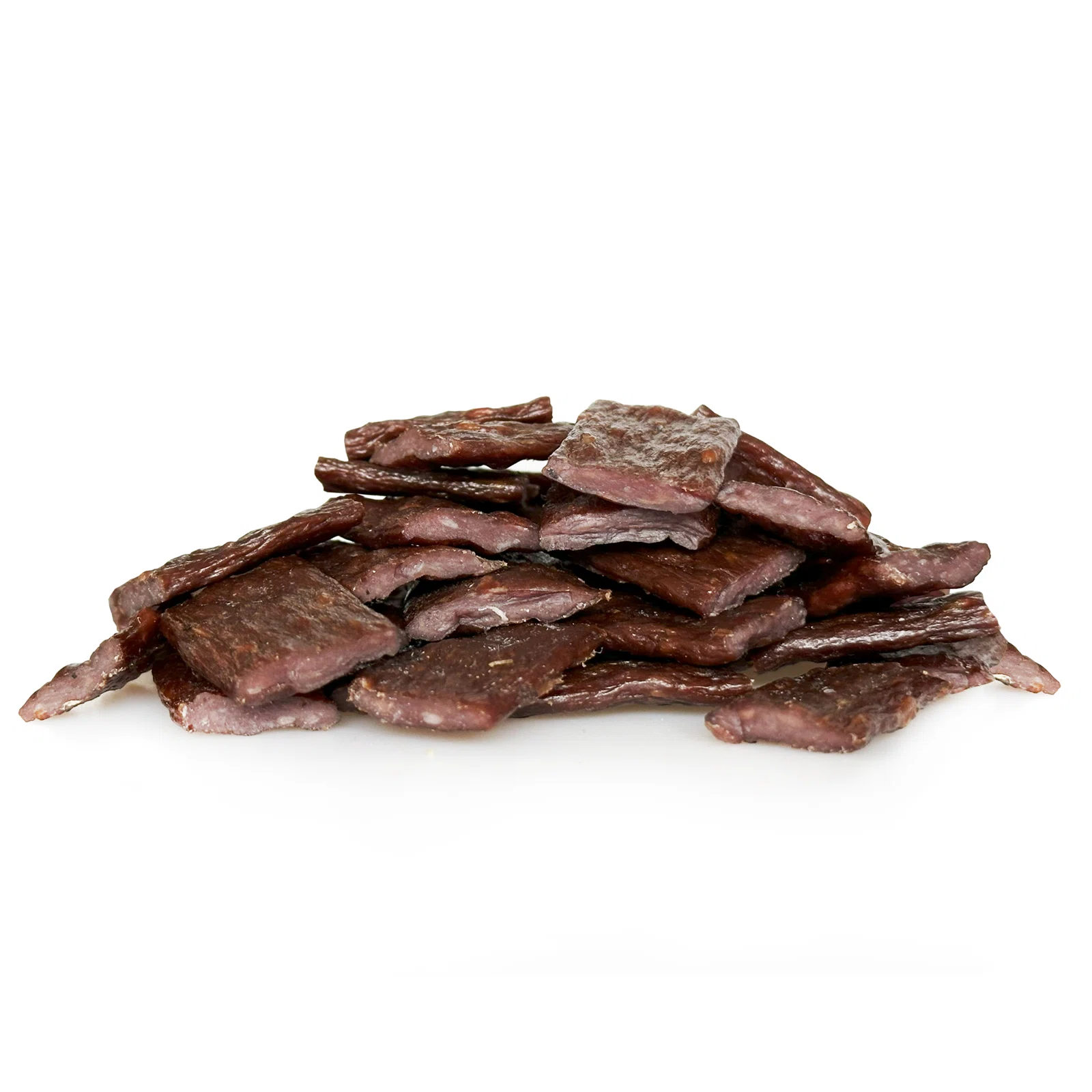 - vysoký obsah proteínu – 50 g sušeného mäsa zodpovedá 170 g steaku