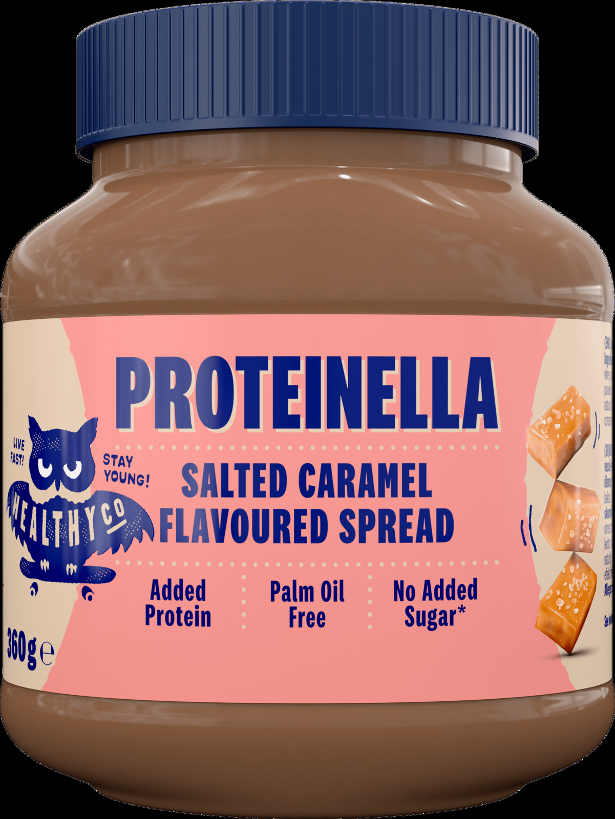 Nátierka so srvátkovým proteínom s príchuťou slaného karamelu. Obsahuje sladidlo.