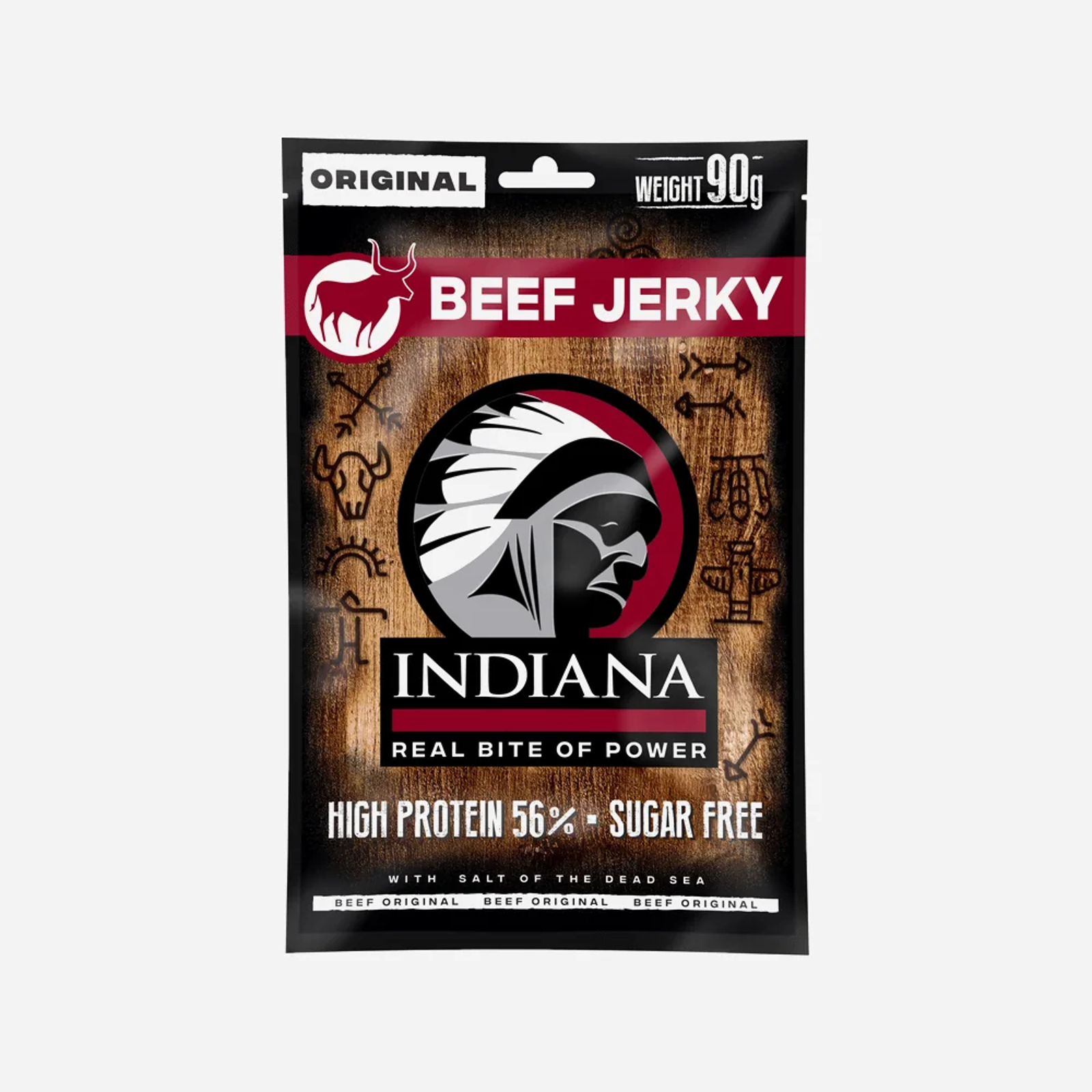 Indiana Jerky Hovädzí originál je originálna receptúra s nezameniteľnou európskou slanou príchuťou mäsa.