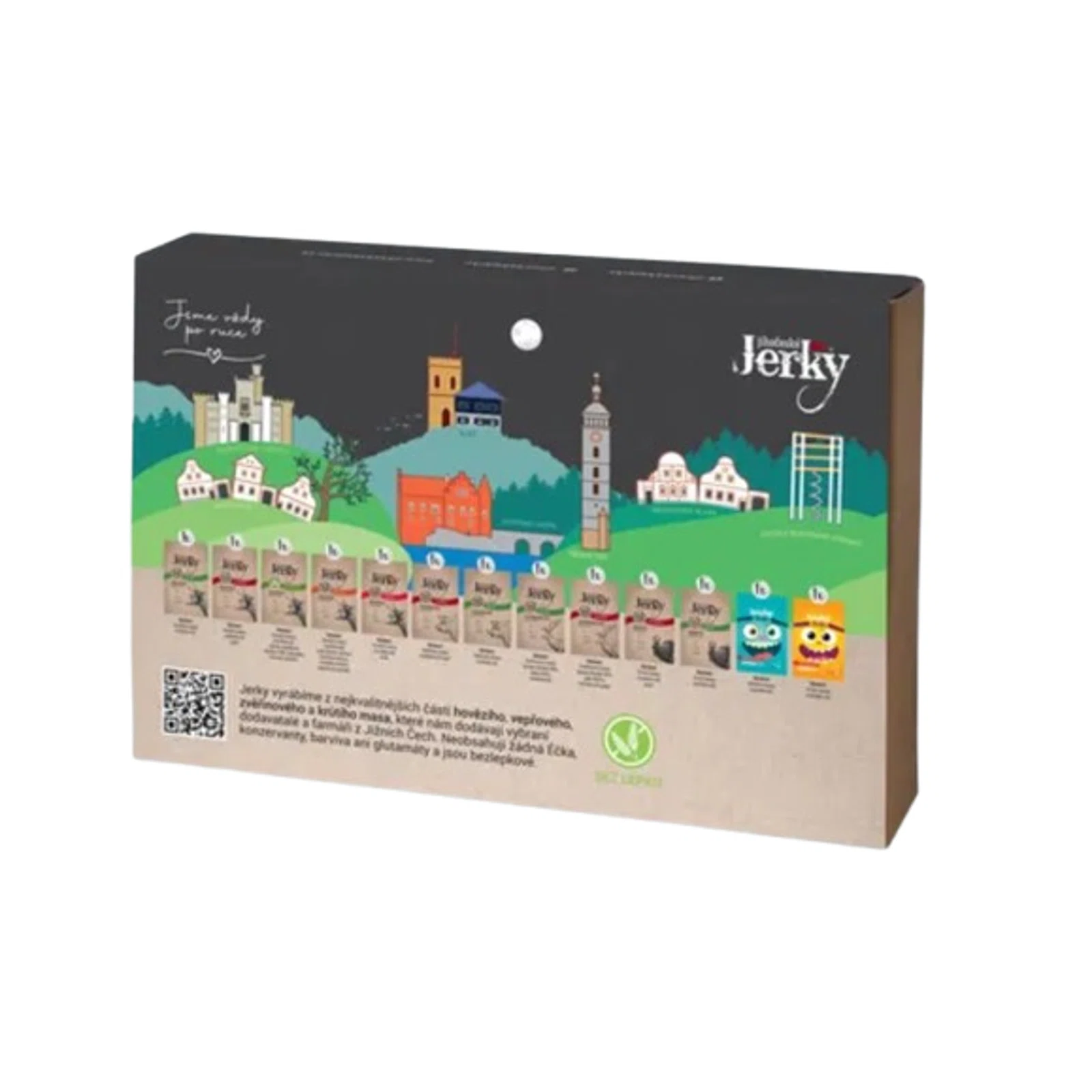 Darčeková sada všetkých druhov sušených mäsa od značky Juhočeské Jerky. Skvelé pre všetky mäsožravce.