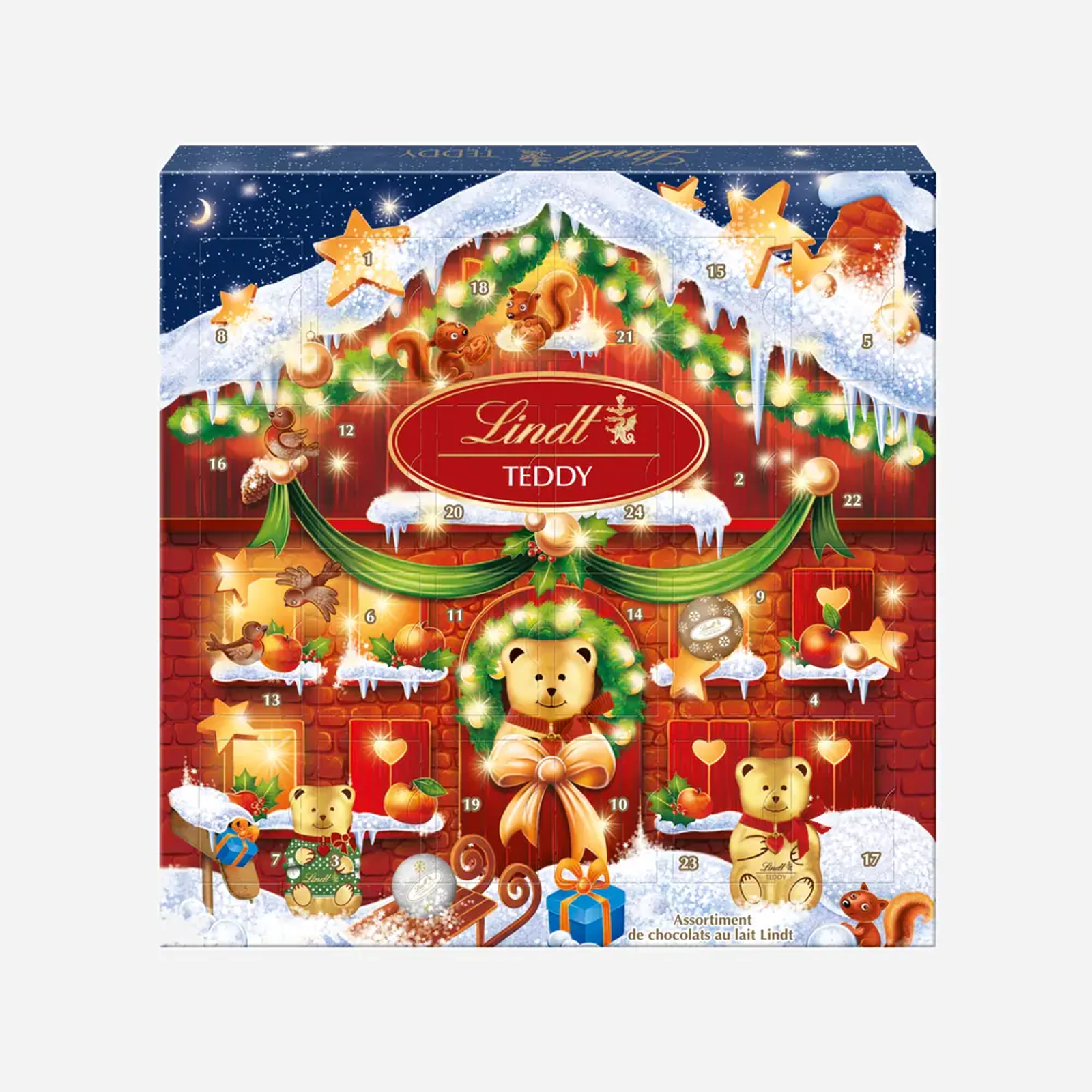 Adventný kalendár Lindt Teddy v malej verzii obsahuje 24 okienok ukrývajúce lindt gule s náplňou a 1x zlatého medvedíka. Tento adventný kalendár poteší malých aj väčších priaznivcov Lindt čokolády.