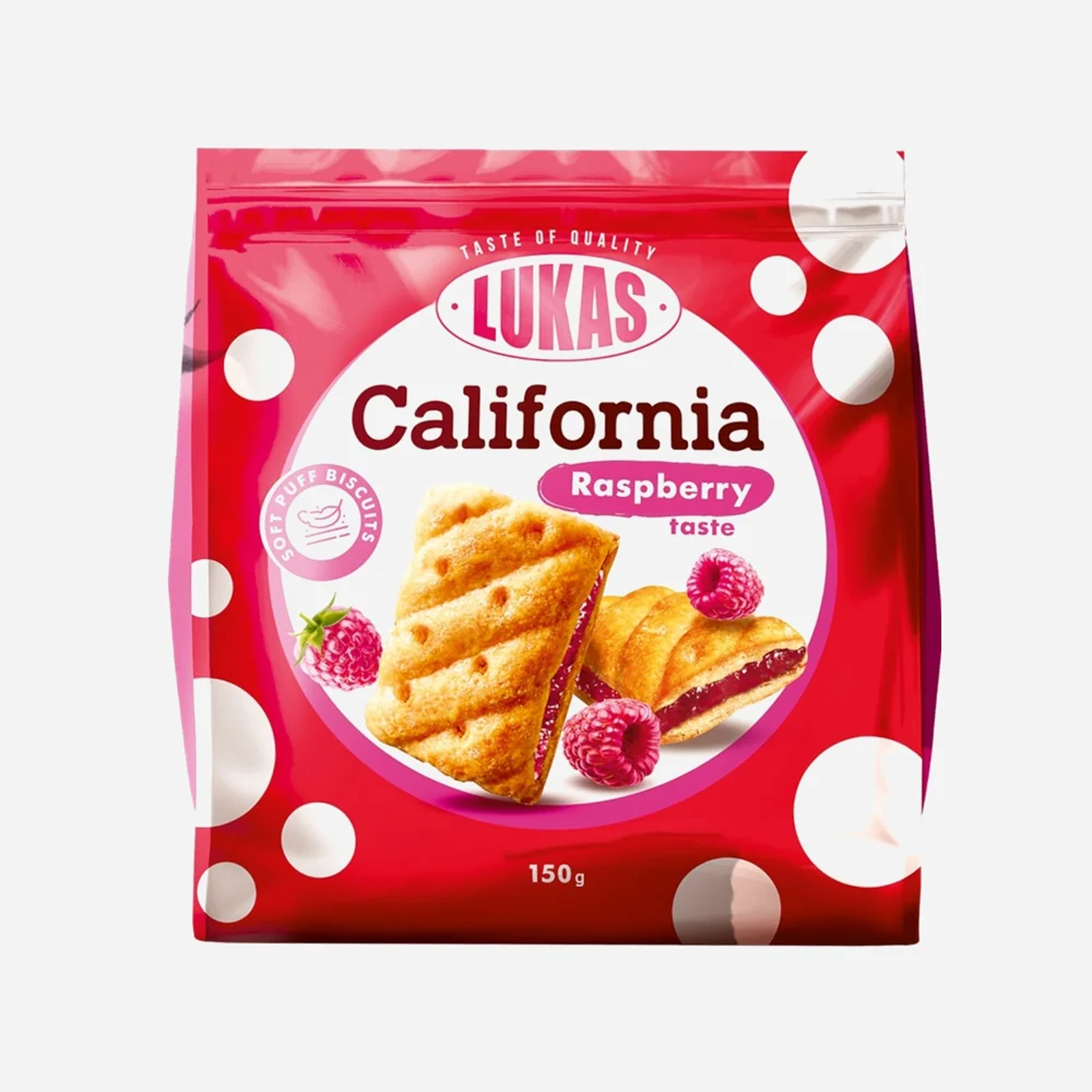 Lukas California sušienky z lístkového cesta s malinovou náplňou, 150 g