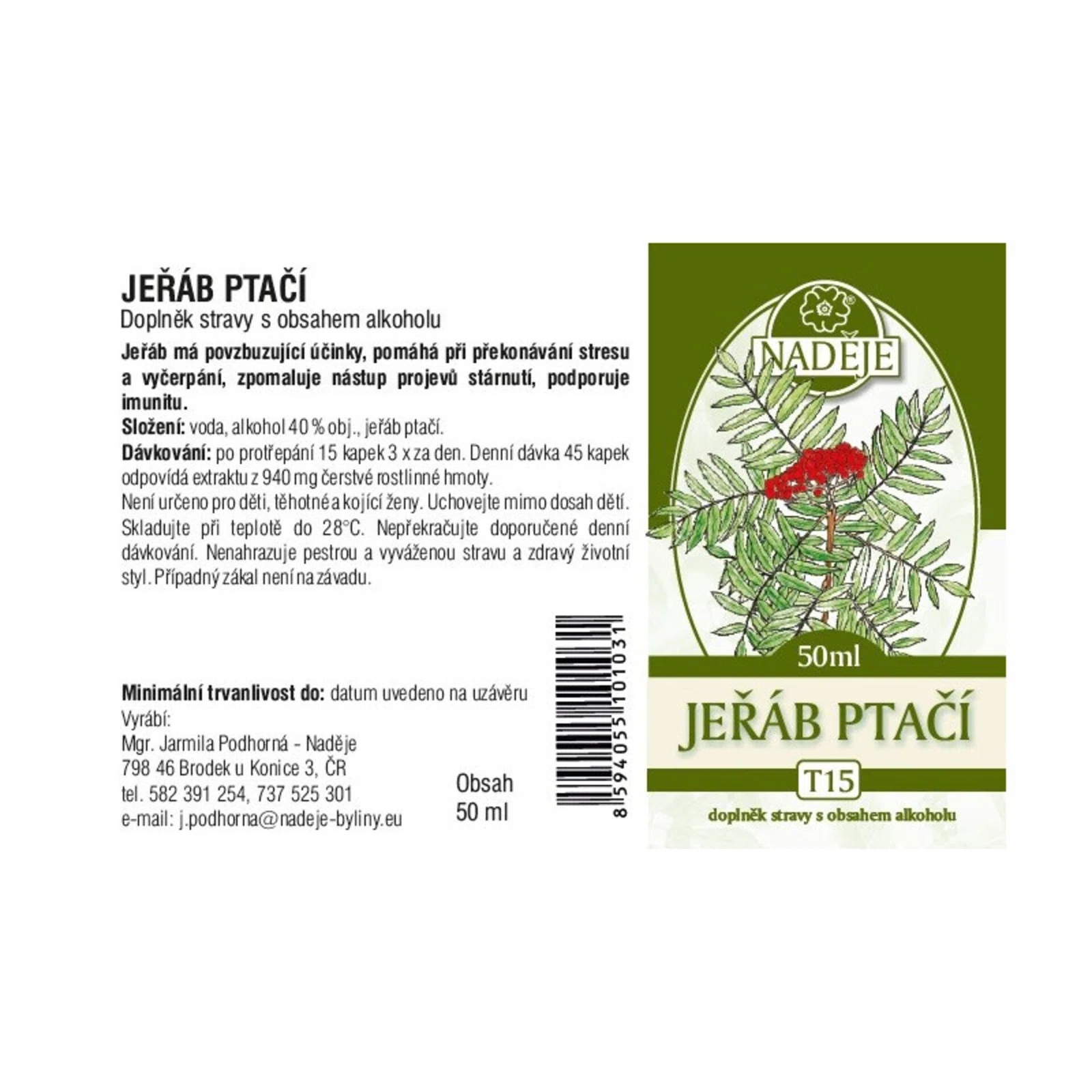 Naděje - Podhorná Jarabina vtáčia tinktúra z byliny, 50 ml