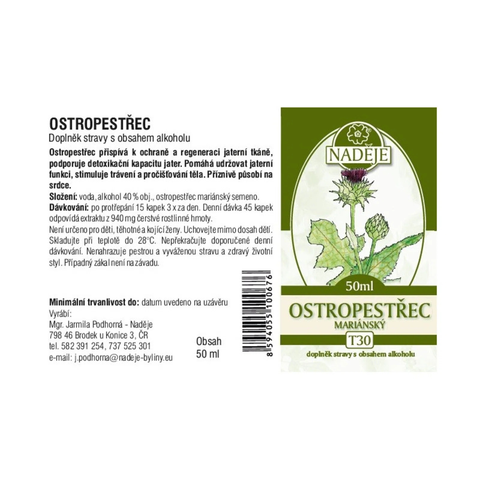 Naděje - Podhorná Pestrec tinktúra z byliny 50 ml