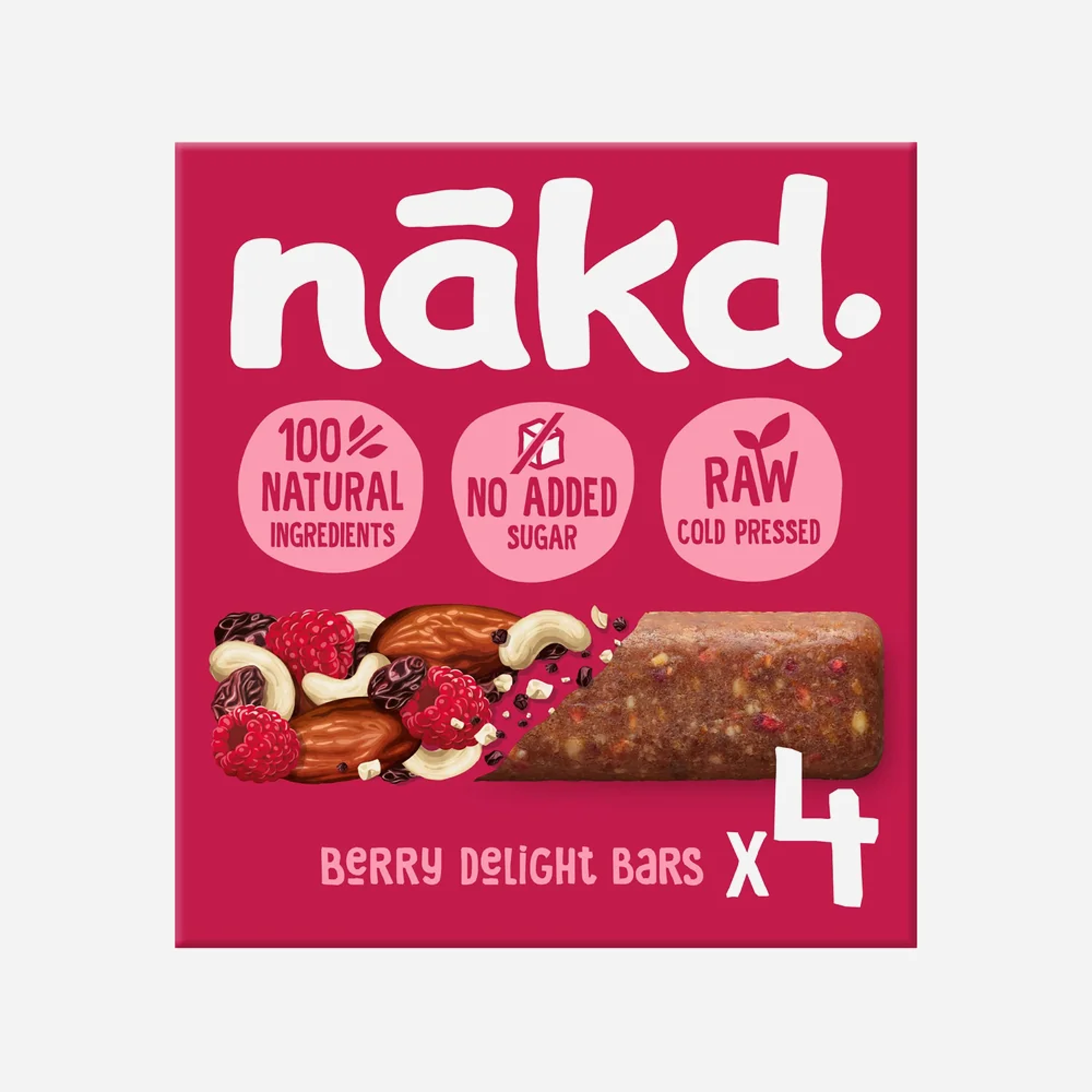 Nakd Berry Delight - Ovocno-orieškové RAW tyčinky s malinami 35g x 4, 140 g