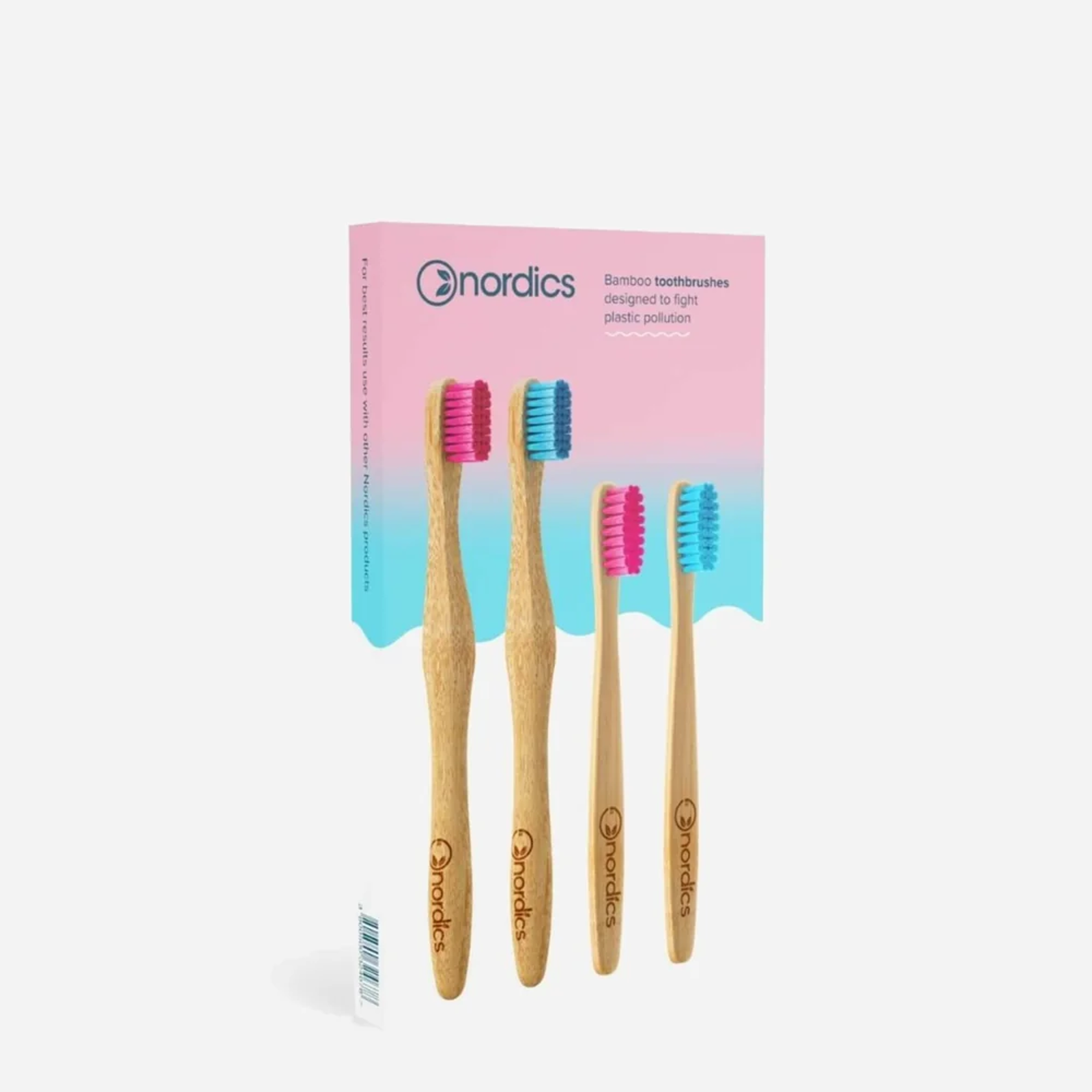 Nordics Sada bambusových zubných kefiek pre deti i dospelých 4 ks