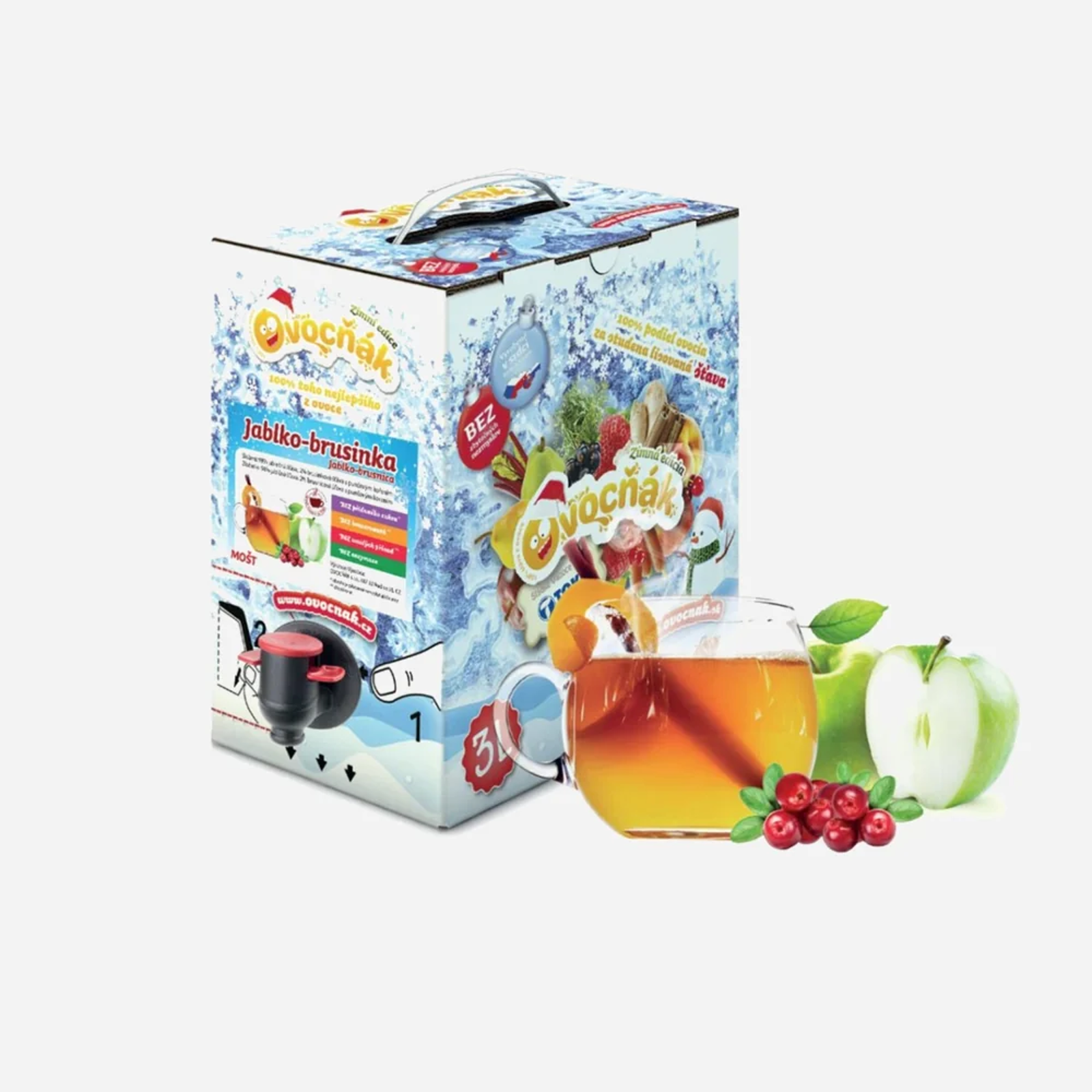 Zloženie : Jablková šťava 98%, sušené brusnicové šťavy s punčovým korením 2%.