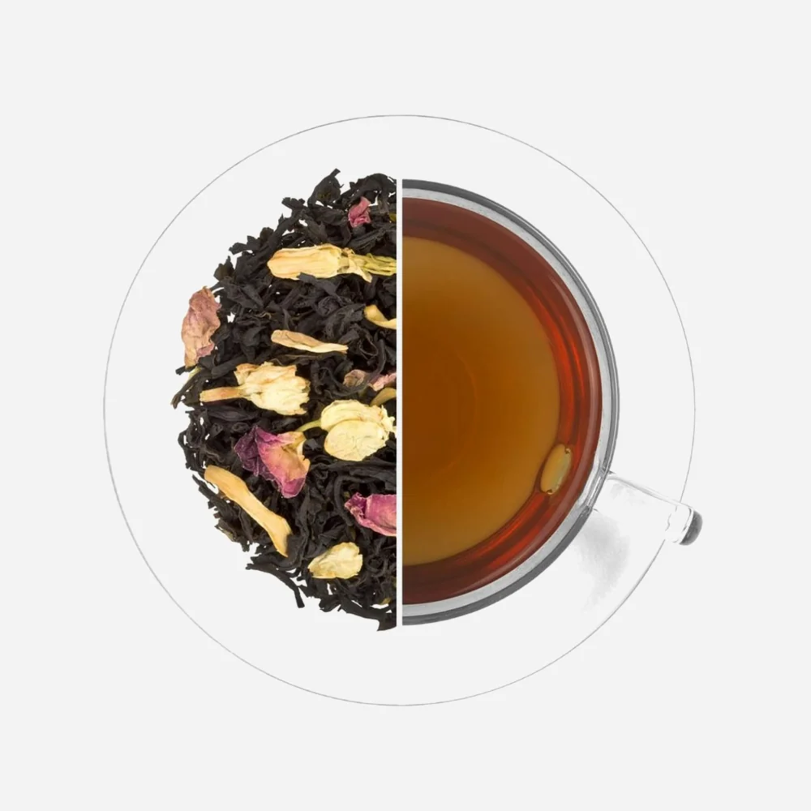 Zloženie : Pravý čierny čaj, aróma, višne, kvety pomarančovníka, jazmínu a ruže.