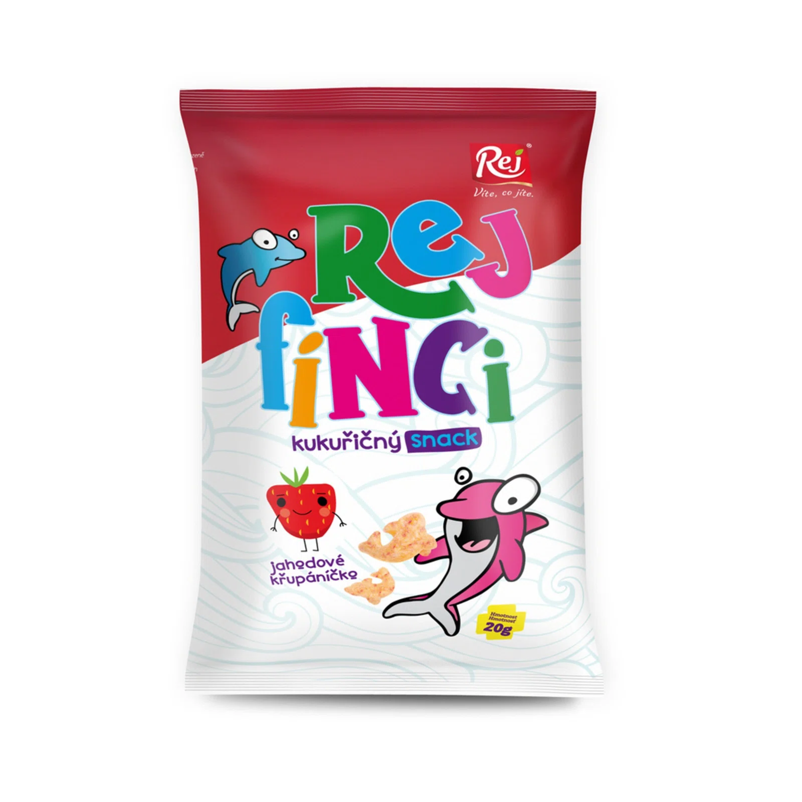 Kukuričný snack v praktickom 20g sáčku, ktorý je vhodný aj na cesty, výlety alebo do auta. Skvelá chuť sladkých jahôd, ktorá zaujme nielen deti, ktoré vyhľadávajú sladkosti. Ovocné snacky REJ obsahujú lyofilizované ovocie a prírodné farbivá a arómy.
