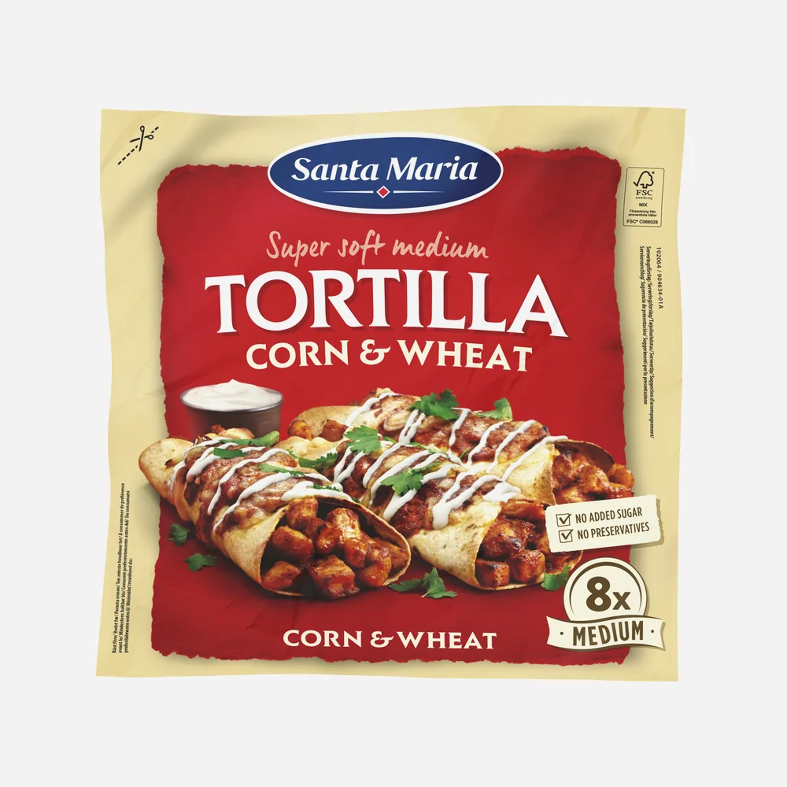Tortilla kukuričná sú kukurično-pšeničné tortily s výraznou chuťou kukurice.