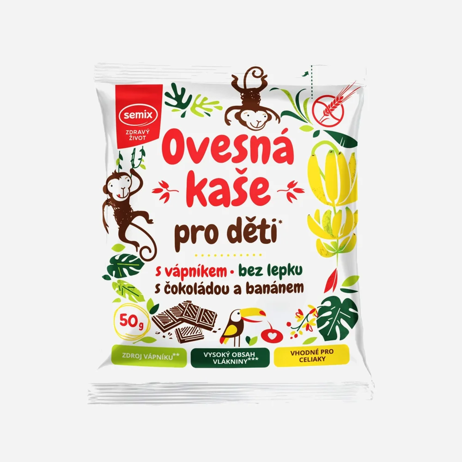 SEMIX Ovsená kaša pre deti s čokoládou a banánom bez lepku, 50 g