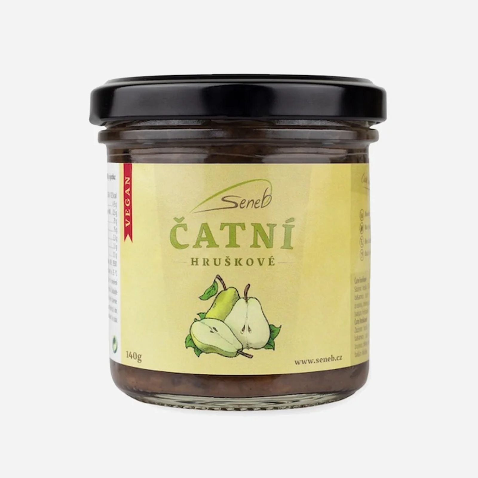 Pôvodne hustá indická zeleninová omáčka, ktorá dopĺňa hlavné mäsové a vegetariánske jedlá. Pripravuje sa z rôznych druhov zeleniny a môže mať širokú škálu chutí od sladkej až po pikantnú. Je to výzva pre kreatívnych kuchárov! Základom čatní sú výborné hrušky. Dochutené vlašskými orechmi a mandľami. Jednoducho pochúťka!