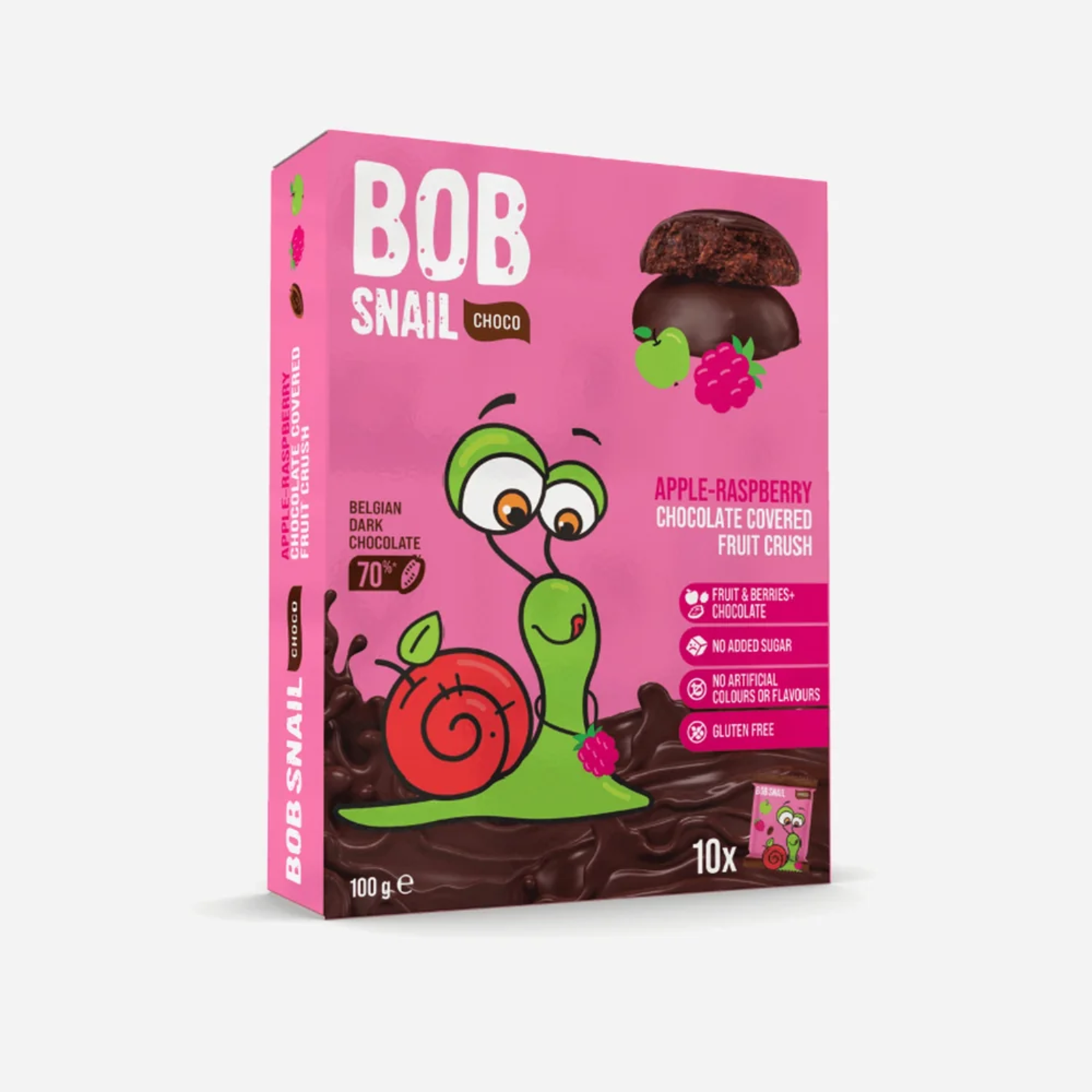 Šnek Bob Ovocná pochúťka v horkej čokoláde jablko a malina, 100 g