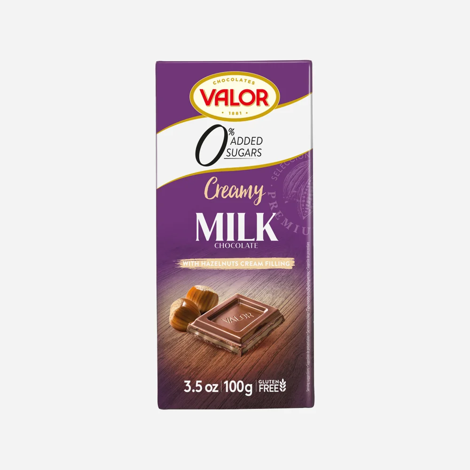 Valor Mliečna čokoláda mliečna plnená krémom 35%, bez pridania cukru 100 g