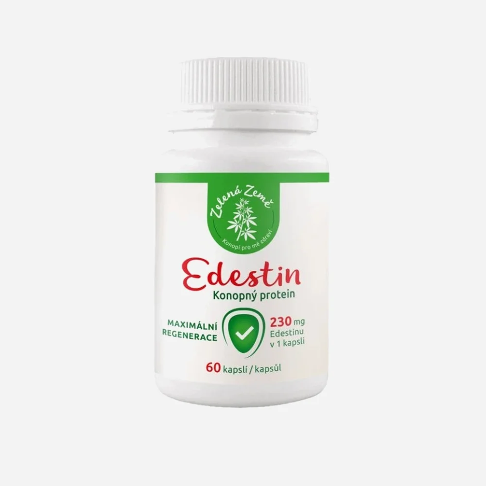 Zloženie: Konopný proteínový koncentrát (zdroj edestínu), konopná vláknina, kyselina L-askorbová (vitamín C), nikotínamid (vitamín B3), stearan horečnatý (protihrudkujúca látka), zložky kapsuly: hydroxypropylmetylcelulóza.