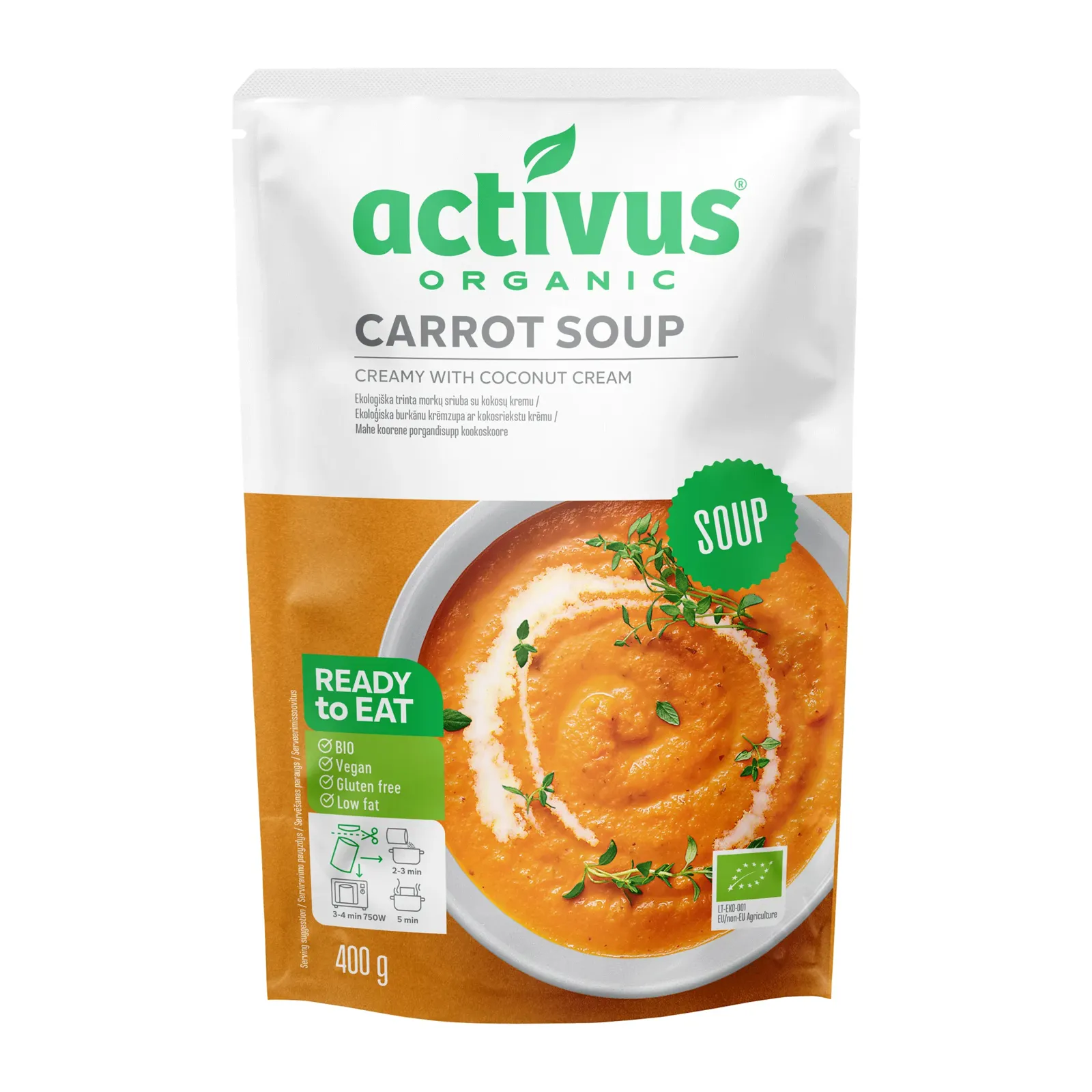 Mrkvová polévka má skvělou chuť, je uvařená z mrkve vypěstované a sbírané na farmách, je dochucená kokosem, kořením a mořskou solí. Je vhodná pro vegany i ostatní gurmány. Výhodou je také obal. Polévka je zabalena v inovativním odlehčeném sáčku. Bylo prokázáno, že tento vak má během životního cyklu produktu výrazně nižší emise CO2 ve srovnání se skleněnou nádobou podobné velikosti.