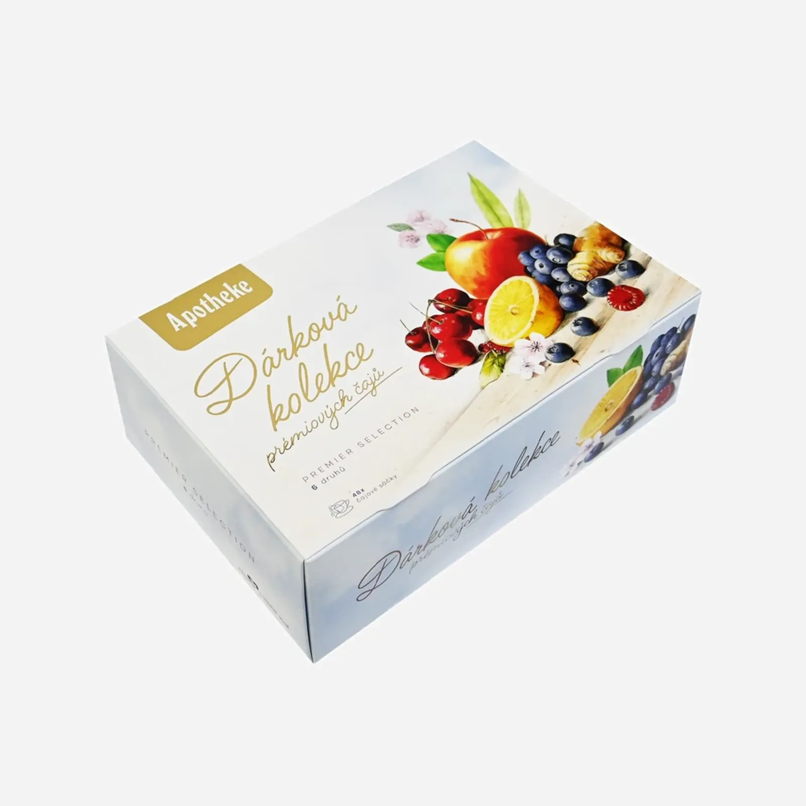 Dárková kazeta s vybranými prémiovými čaji Apotheke, nabízí pestrou škálu nevšedních i osvědčených ovocných chutí.