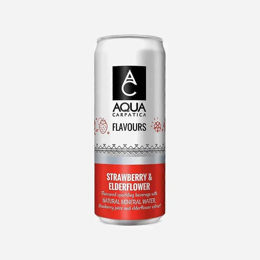 Složení: Naturální minerální voda Aqua ze zdroje 91,7 %, agávový sirup, oxid uhličitý, citronová šťáva z koncentrátu 1,9 %, přírodní jahodové aroma, jiné přírodní aroma, extrakt z bezového květu 0,82 %, jahodová šťáva z koncentrátu 0,1 %, barvicí koncentrát z mrkve.