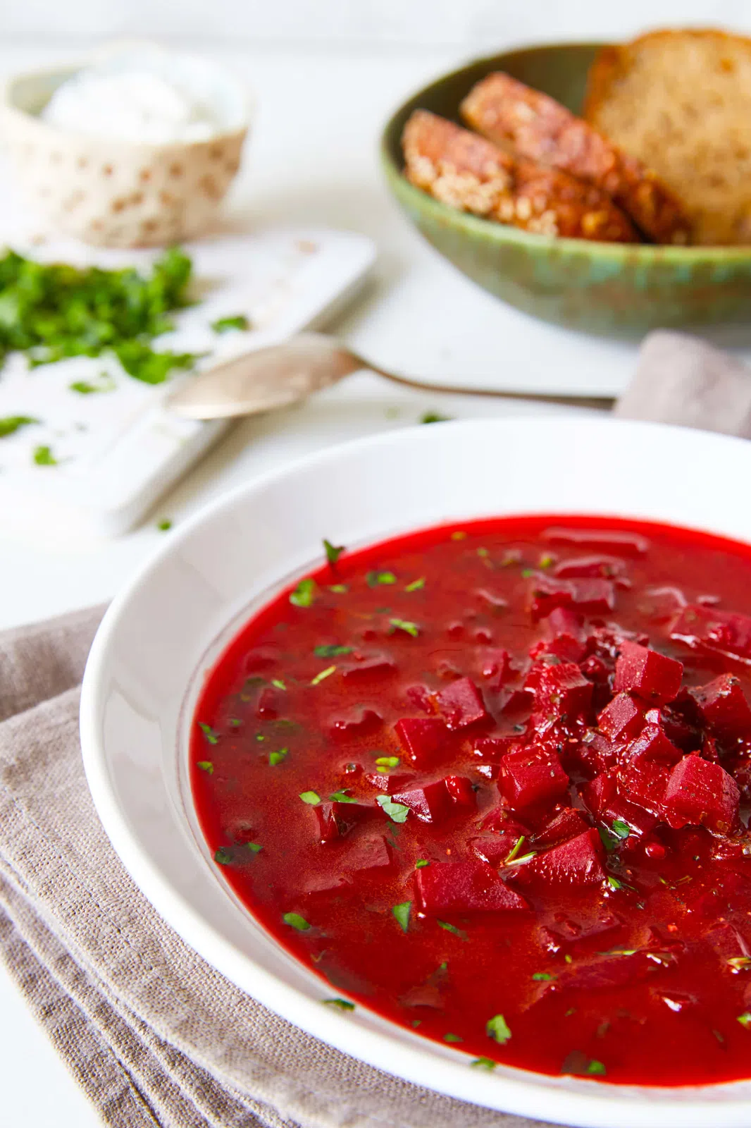 Polévka z červené řepy má skvělou chuť, je uvařená z čerstvé červené řepy a zeleniny z italských farem je jemně dochucená kořením a mořskou solí. Neobsahuje konzervanty a alergeny a je vhodná pro vegany.