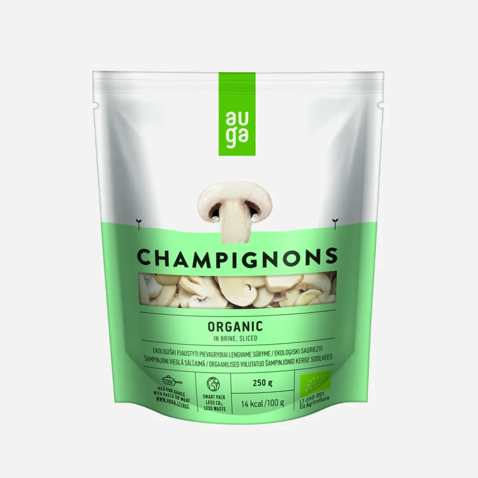 Auga Žampiony ve slaném nálevu krájené, 250 g