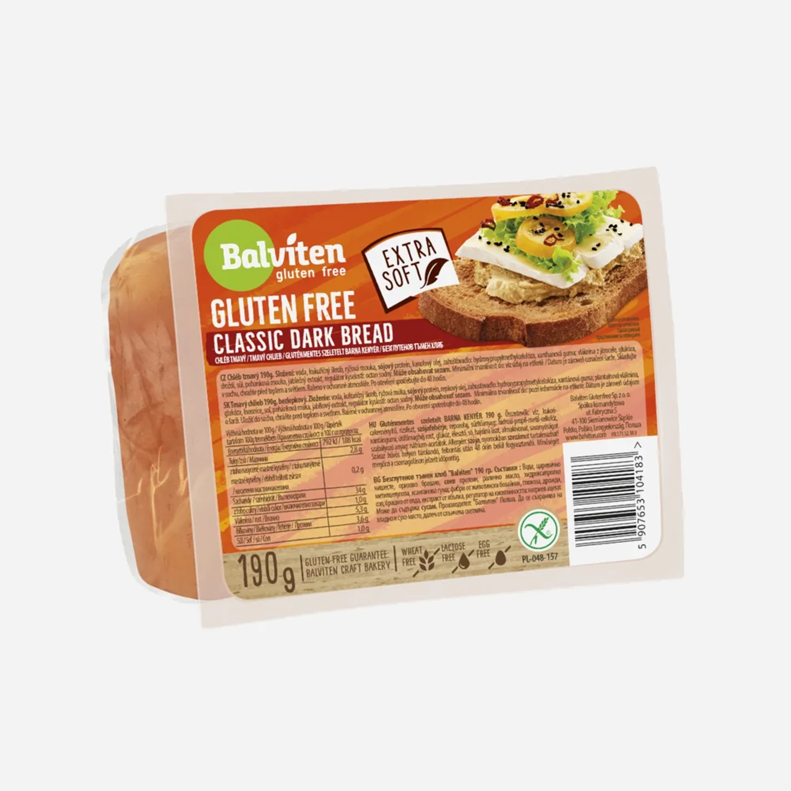 Bezlepkový, vakuově balený, tmavý, krájený chléb určený k přímé konzumaci. Chléb je také bez vajec a laktózy. Pro zvýraznění chuti pečiva je možné otoustovat.