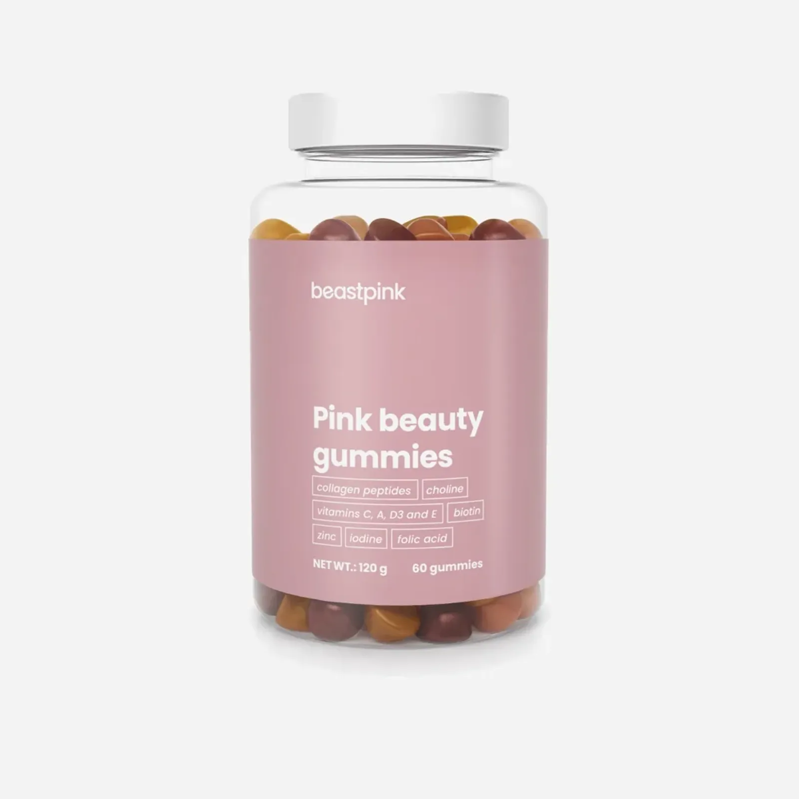 Pink Beauty Gummies je funkční komplex účinných látek, který všem ženám pomůže podpořit krásu a podtrhnout jejich jedinečnost. Jde o spojení 9 vitamínů, 2 minerálních látek, cholinu a dobře vstřebatelných kolagenových peptidů. Velkou předností je také forma doplňku. Jedná se o gumové bonbóny, které mají příjemnou osvěžující chuť. Podpořit svou krásu tak nikdy nebylo jednodušší.