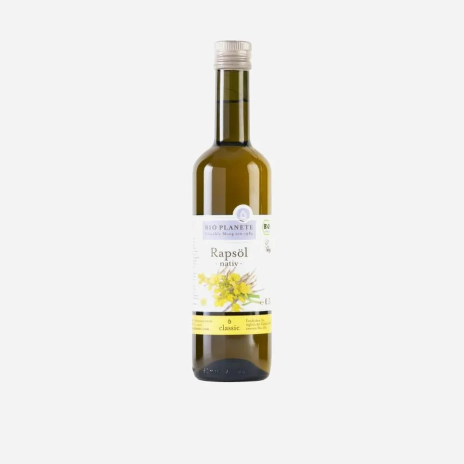 Řepkový panenský olej tmavě žluté barvy a neutrální chuti v biokvalitě. Lisován za studena bez použití chemikálií.