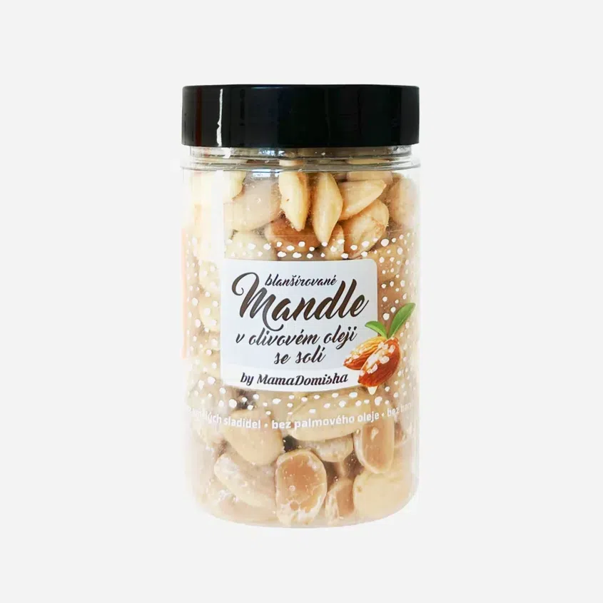 GRIZLY by @mamadomisha Blanšírované Mandle solené s olivovým olejem by Mamadomisha - expirace, 180 g