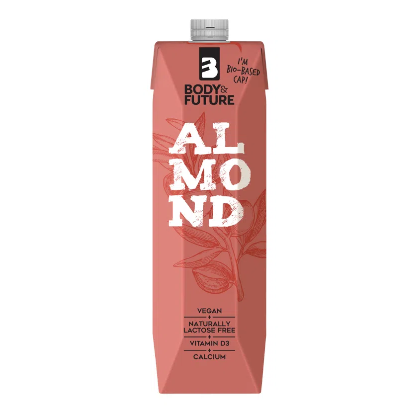 Mandlový nápoj v ekologickém obalu z obnovitelných zdrojů- 80% obalu je vyrobeno z obnovitelných zdrojů: dřeva a cukrové třtiny. Při jeho výrobě se vyprodukuje o 17% méně CO2 v porovnání s běžným kartonovým obalem. Bio based uzávěr je vyroben z polymerů na bázi cukrové třtiny. Nápoj je obohacený o veganský vitamin D3 a vápník, který se stará o správné fungování svalů a kostí. Je jemně sladké chuti a vhodný pro vegany. Bez konzervačních látek, bez GMO a laktózy.