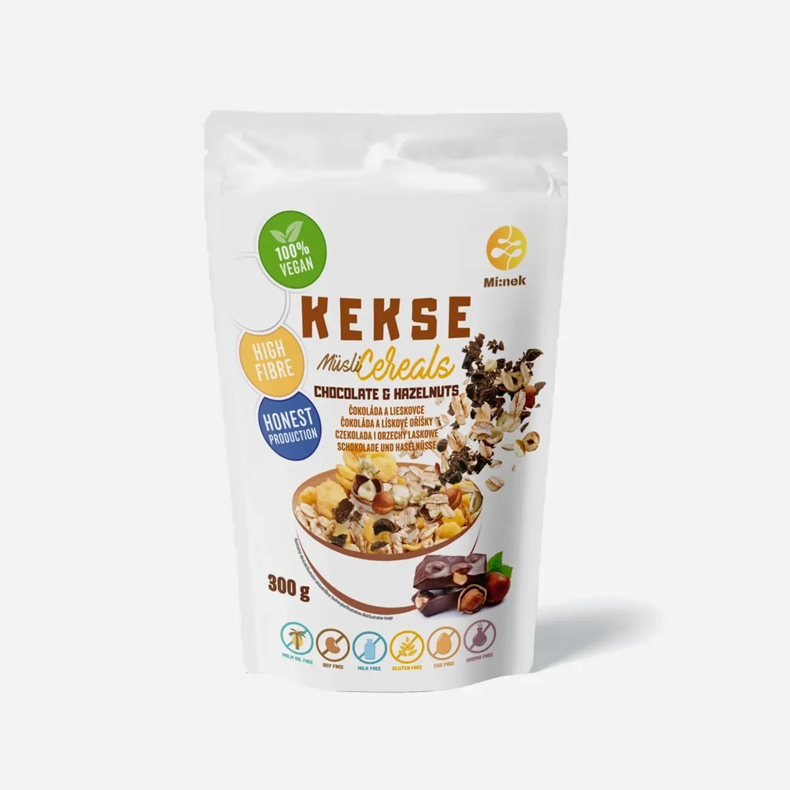 Lahodná müsli směs s kousky ovoce. Přirozeně bezlepkové a vegan s kousky 60% vegan hořké čokolády a kousky lískových oříšků. Základem jsou prémiové ovesné vločky a kukuřičné lupínky. Tato müsli směs je plná kvalitních surovin, kde spoustou ovoce a jinými ingrediencemi v Kekse nešetří.