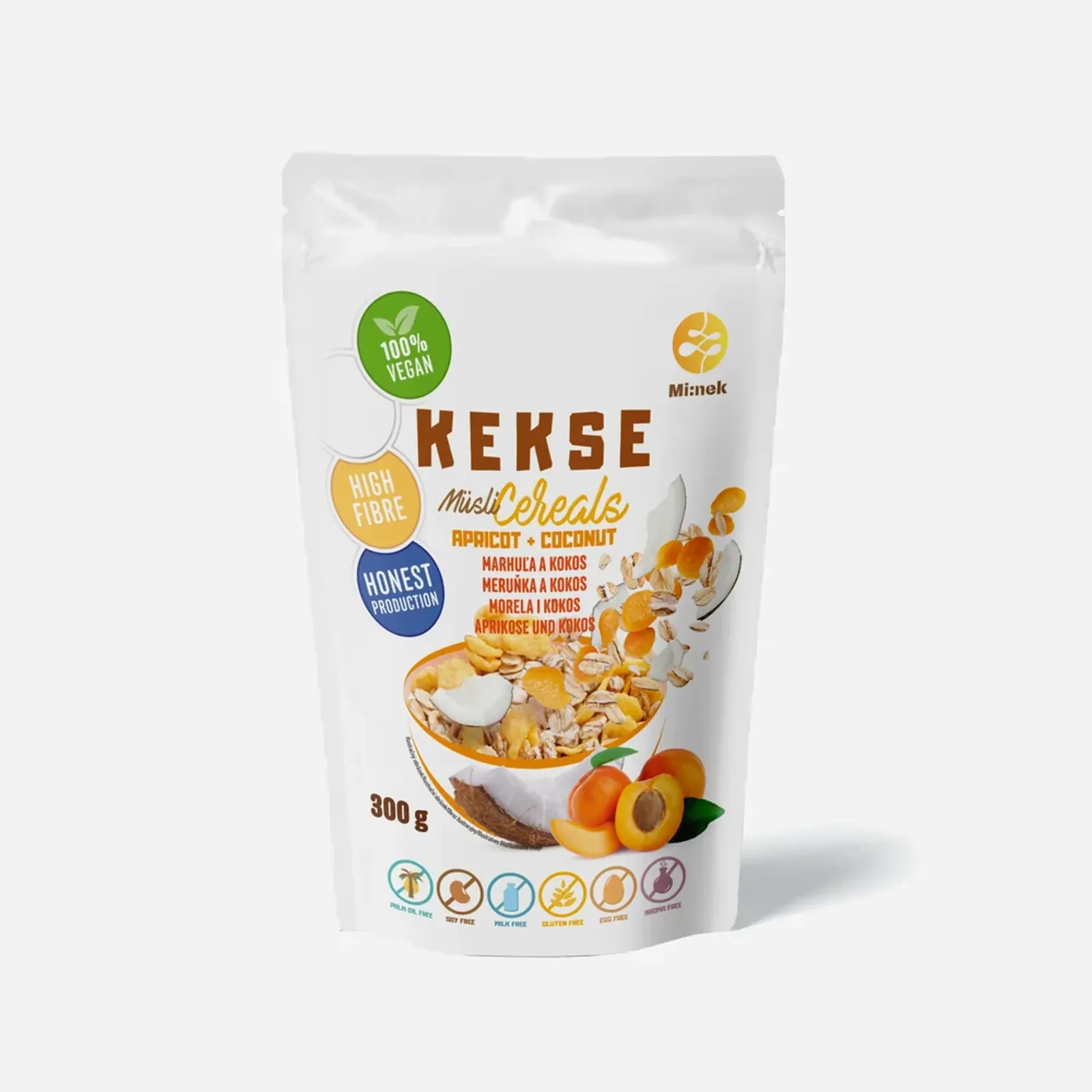Lahodná müsli směs s kousky ovoce. Přirozeně bezlepkové a vegan s kousky meruňky a kousky kokosových chips. Základem jsou prémiové ovesné vločky a kukuřičné lupínky. Tato müsli směs je plná kvalitních surovin, kde spoustou ovoce a jinými ingrediencemi v Kekse nešetří.