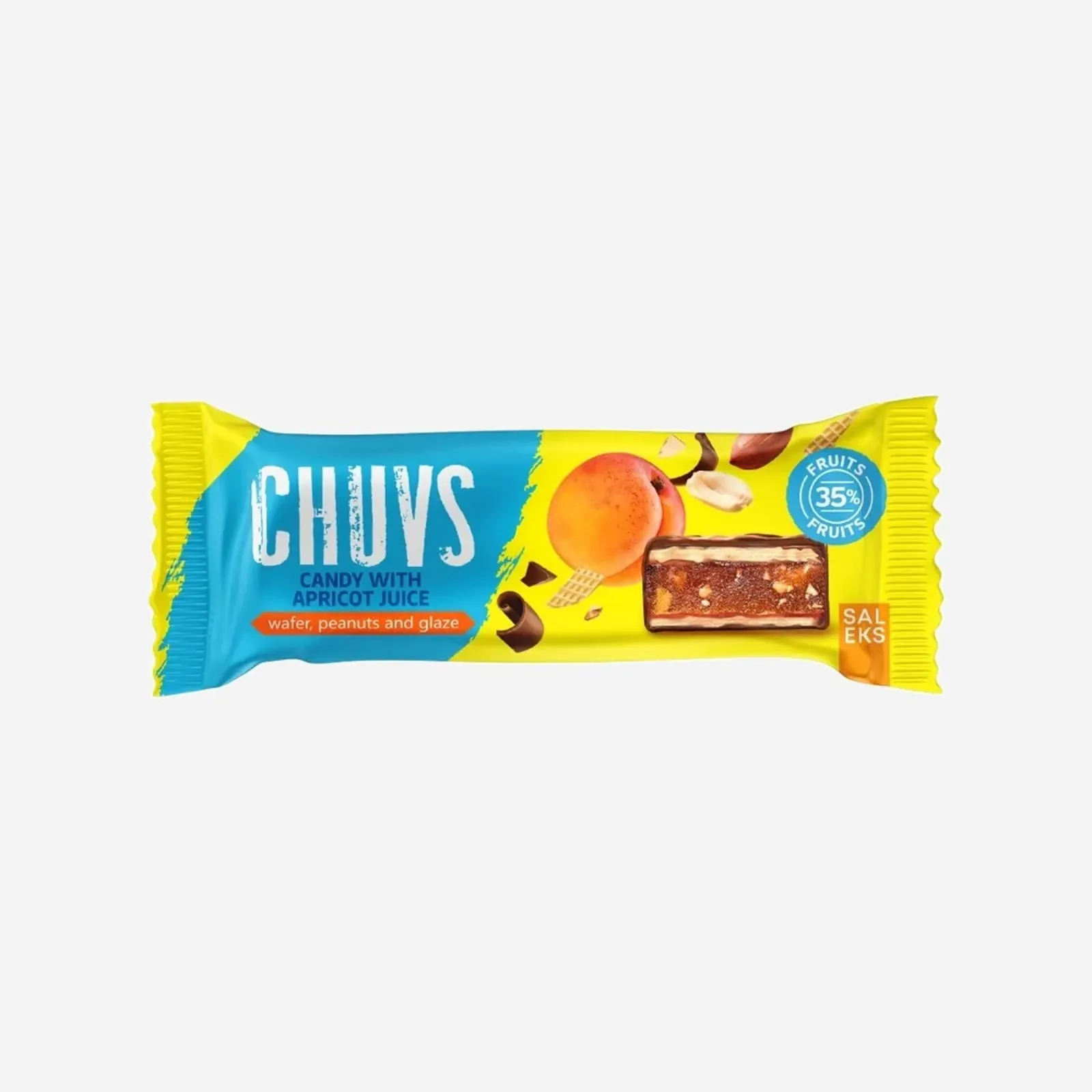 Chuvs tyčinky jsou revolučním spojením bohaté chuti a energetického složení. Svěží a nezaměnitelná kombinace ingrediencí přináší šťávu do každodennosti života. Každá tyčinka obsahuje pestré složení, včetně šťavnatého ovoce, křupavých ořechů a bohaté kakaové polevy.